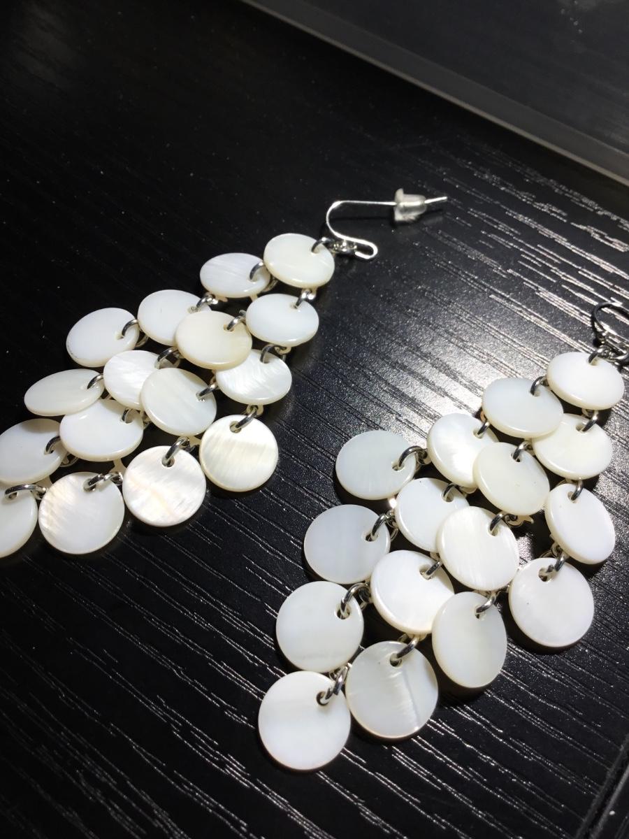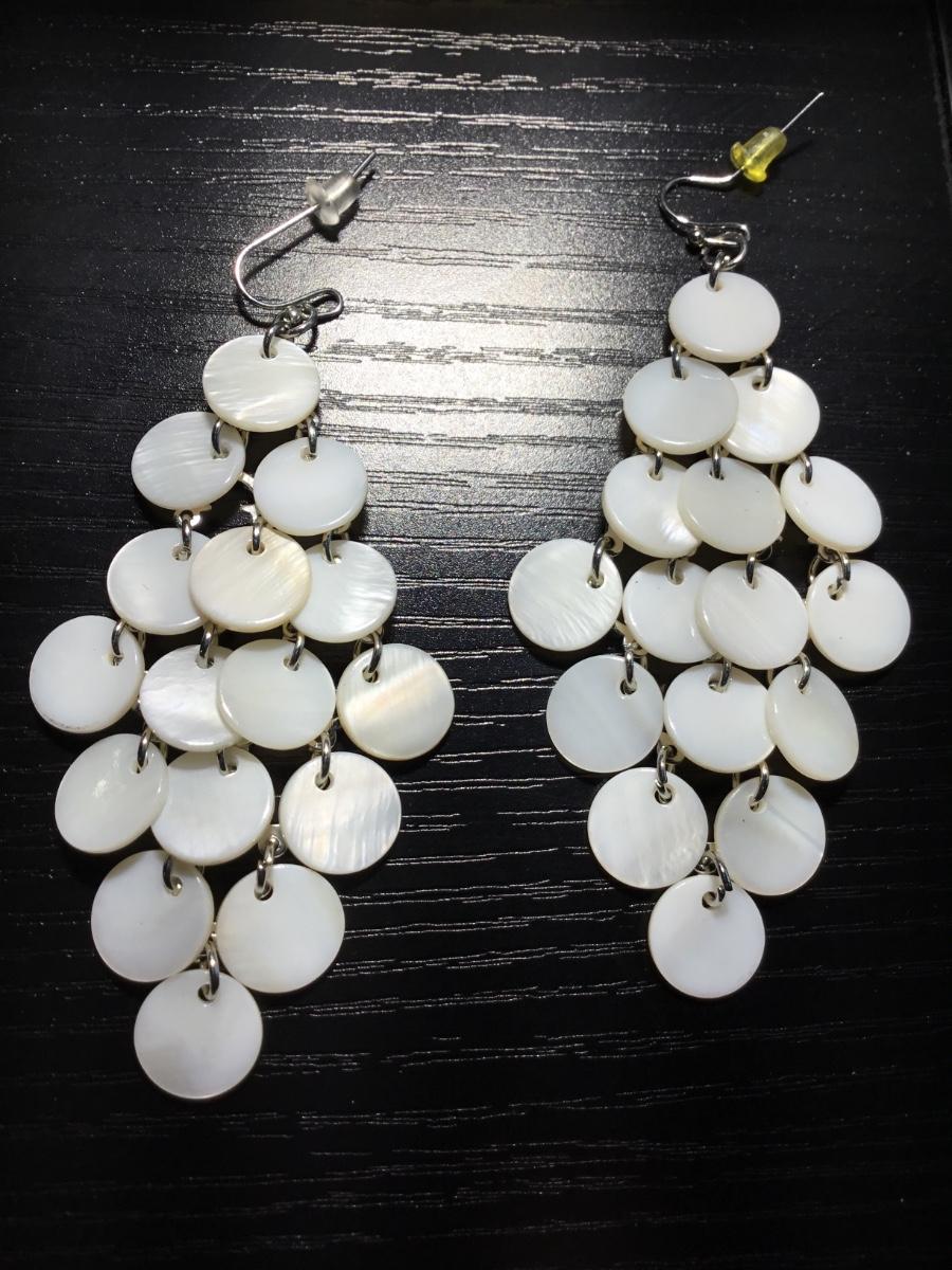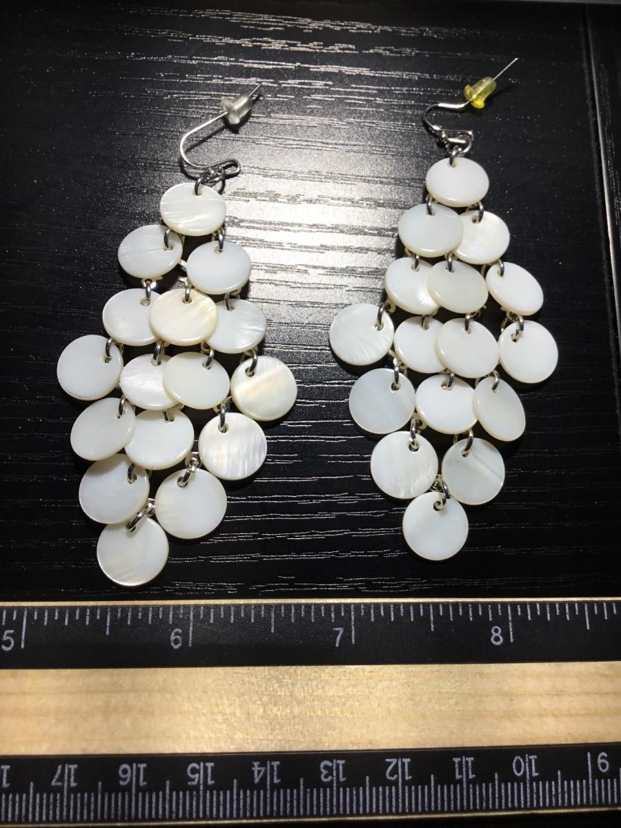 White disc beaded dangle fashion earrings