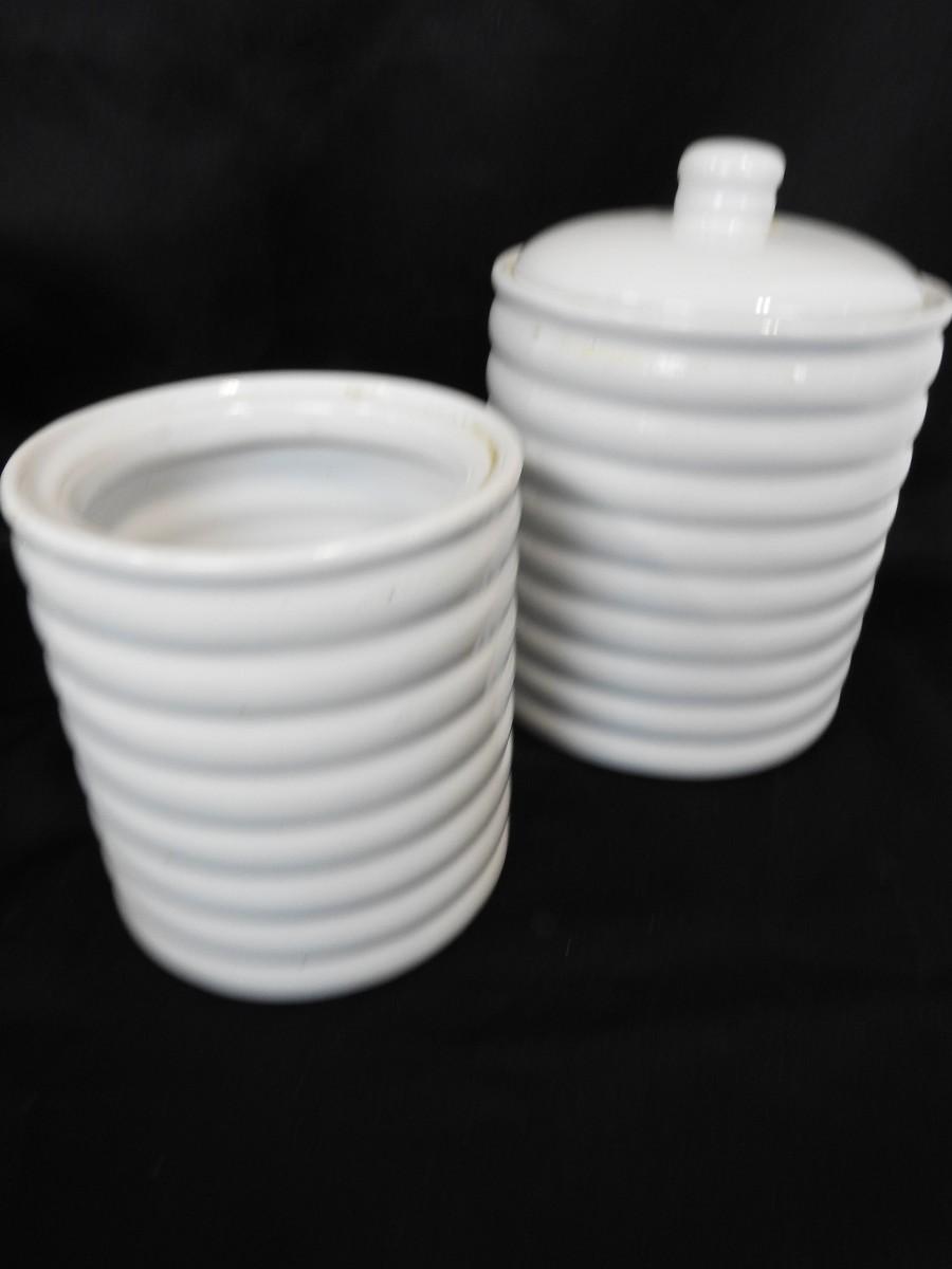White Dishes/Decor Lot: Canisters, Vase, Tray, Section Serving Dish, Sugar Bowl w/Creamer-Lot Has Some Vintage Items