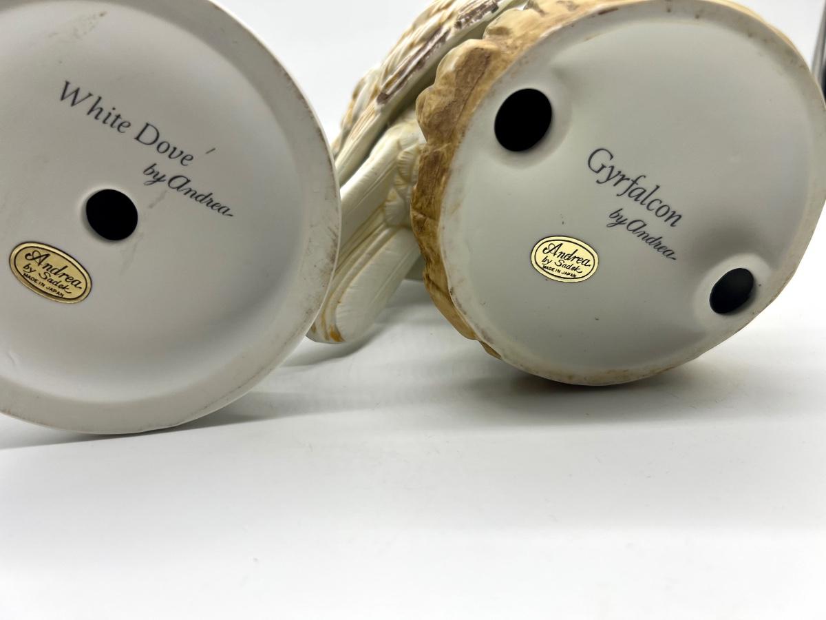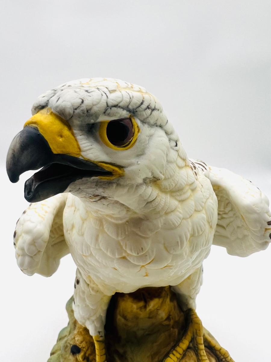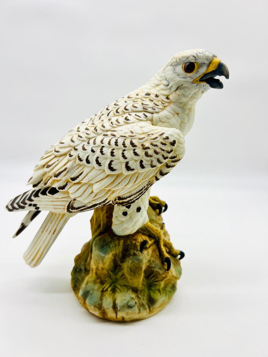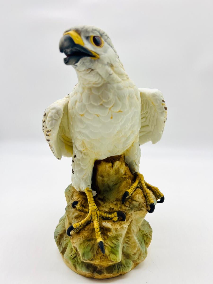 Vintage Andrea by Sadek Gyrfalcon Bird Porcelain Figurine Statue measures 9 1/2 inches tall.