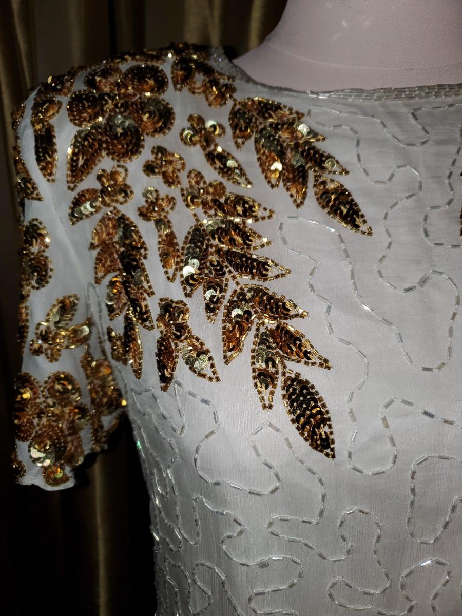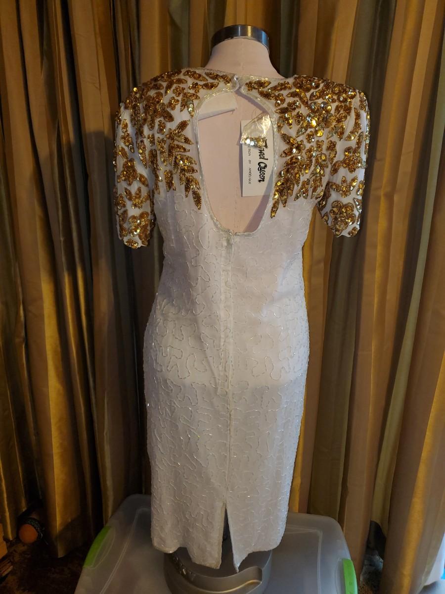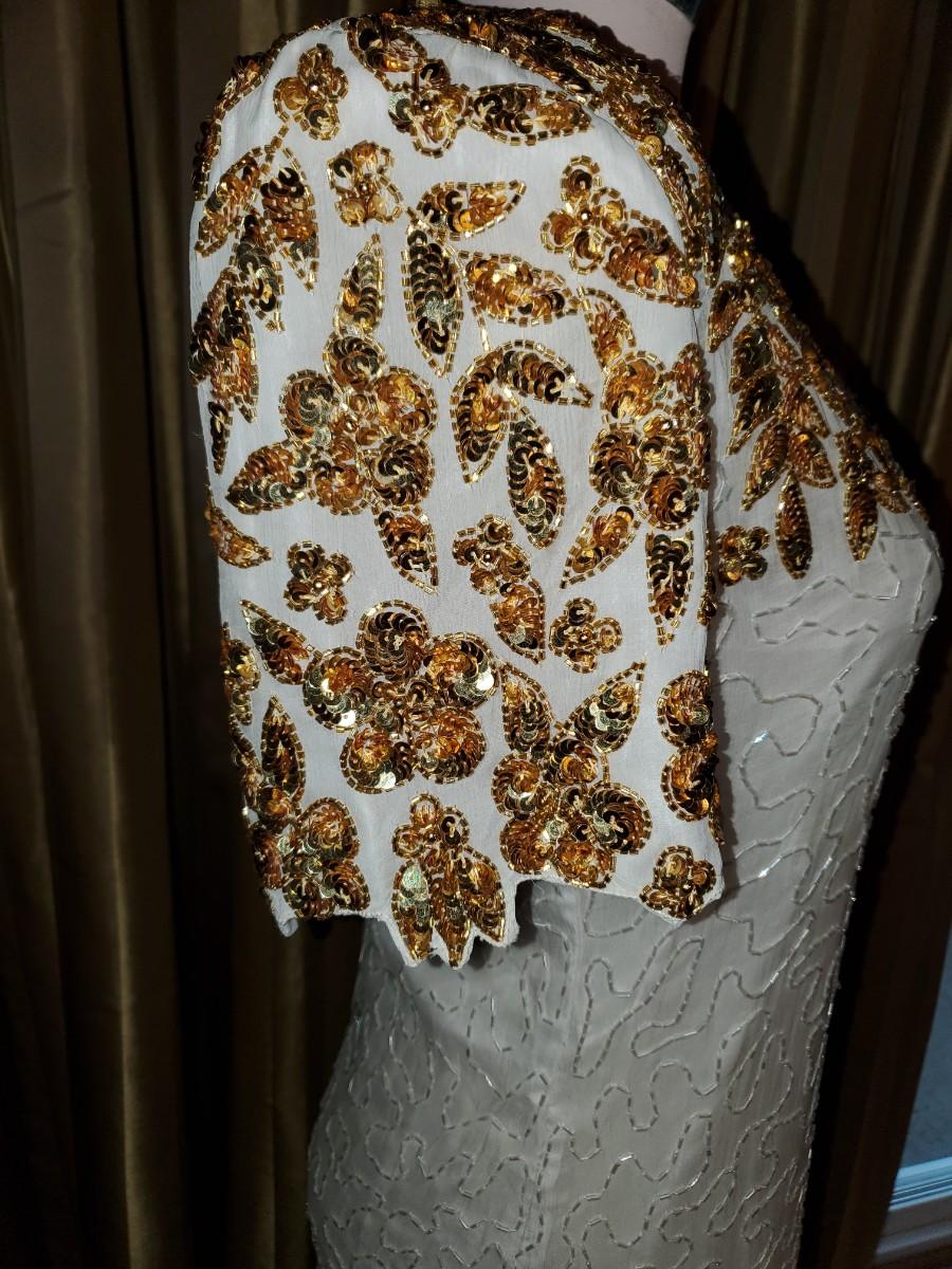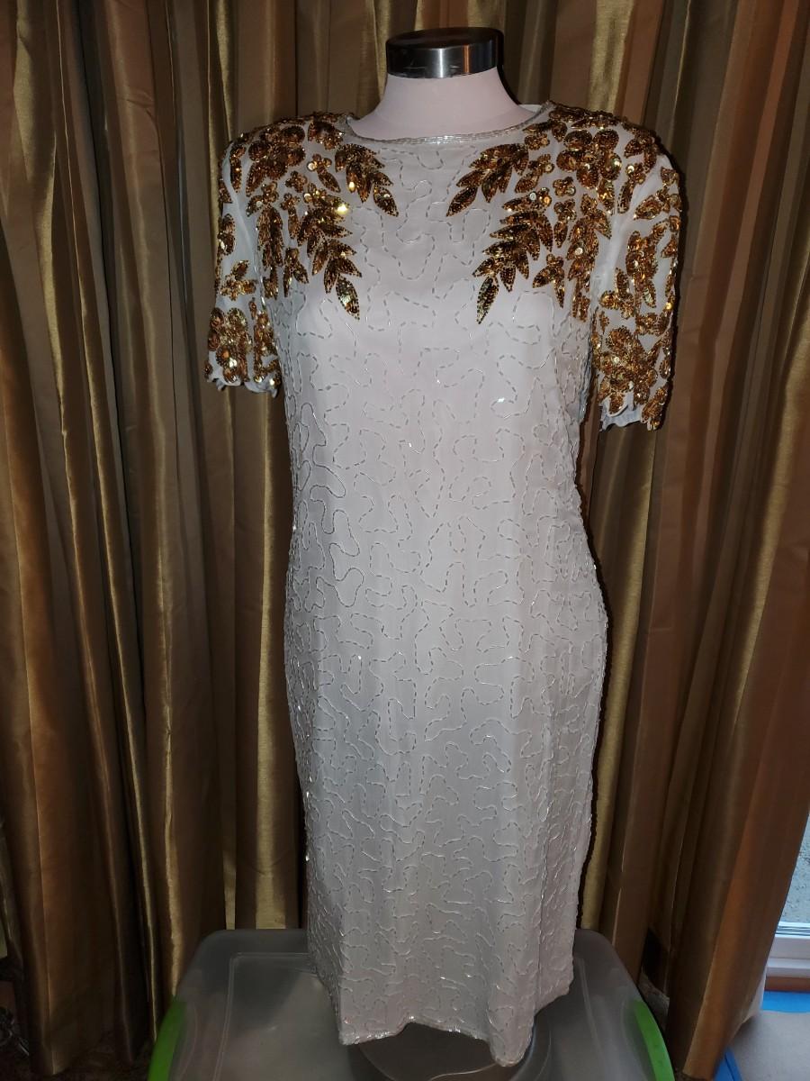 Vintage 1980's White with Gold Beading Dress 100% Silk NWT