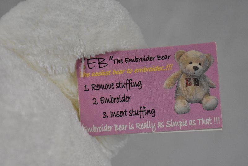 White "Embroider Bear" with easily removed stuffing for easy embroidery