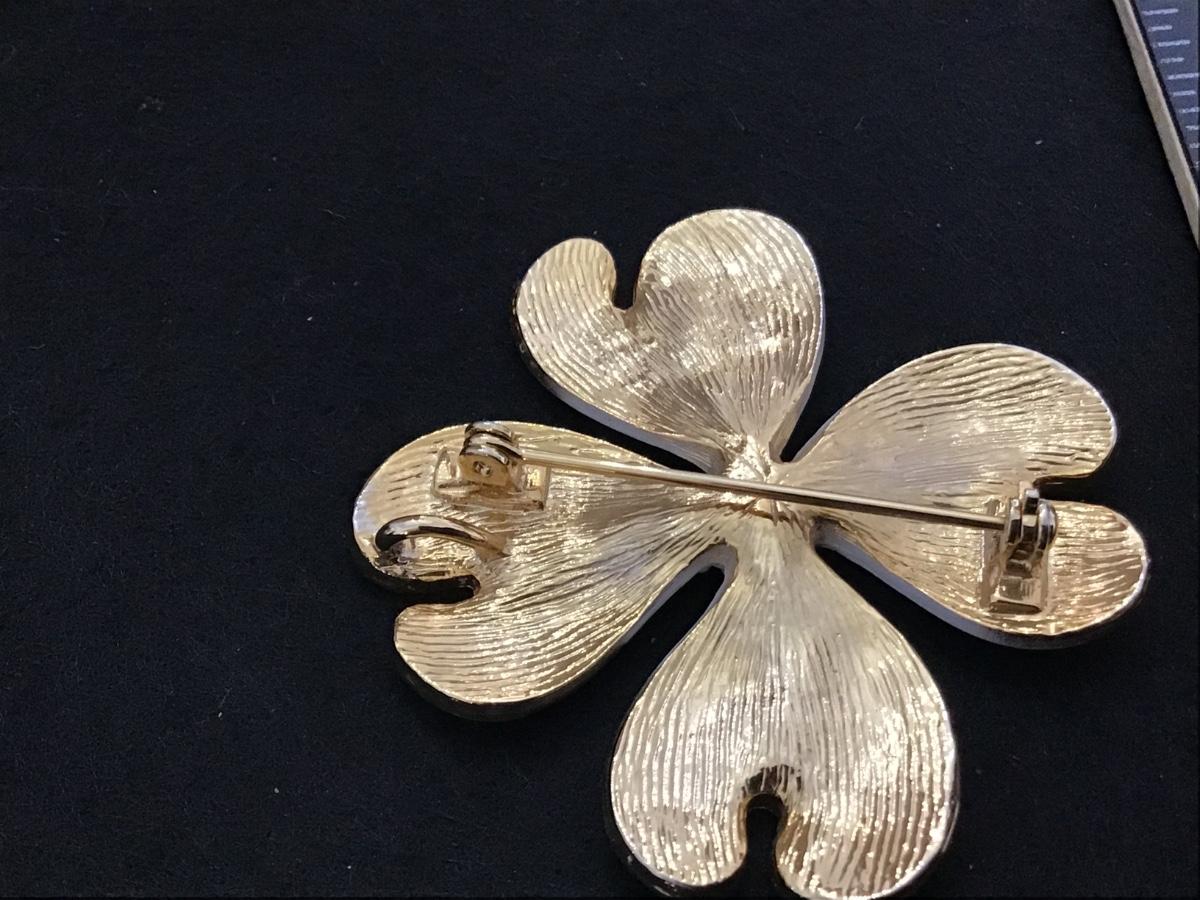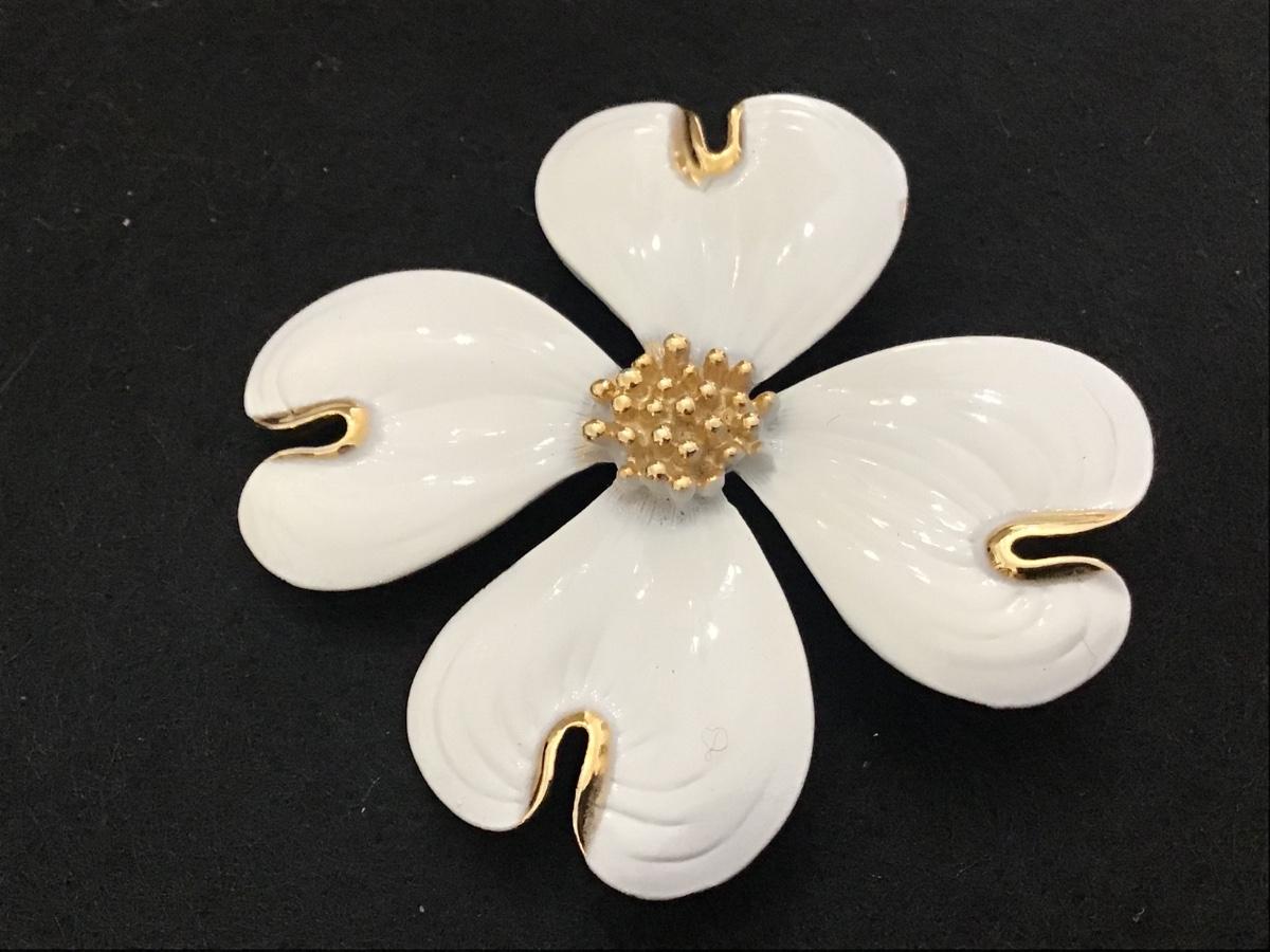White Enamel Dogwood. Pendant or Brooch Gold Accents
