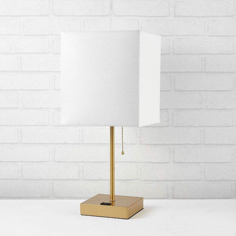 White Fabric Square Shade, Gold Metallic Base Lamp, Better Homes & Gardens - New