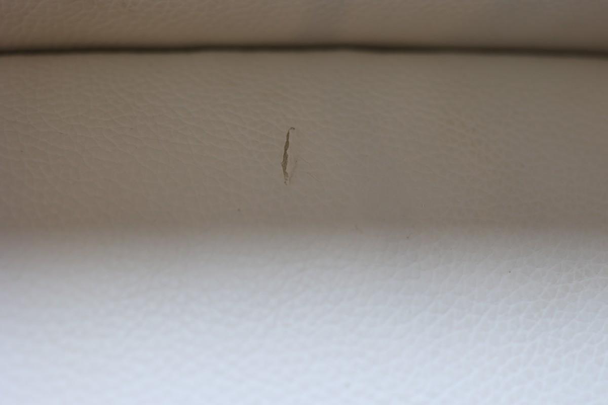 The chair has one small rip in the back of the seat cushion.