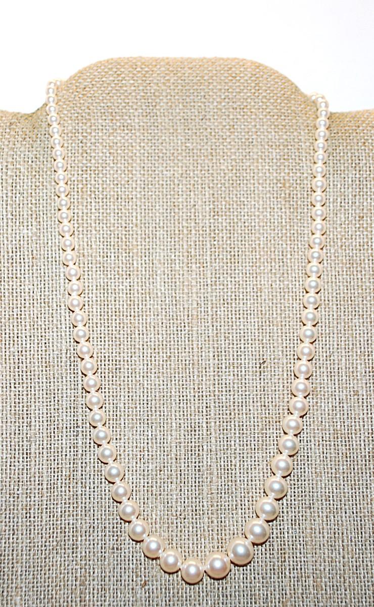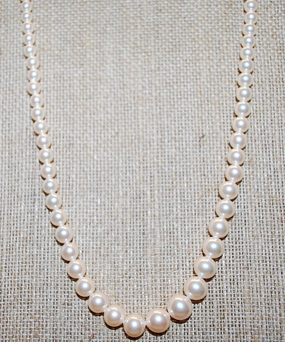 White Faux Reducing Size PEARLS NECKLACE with Gold Tone SNAP-Style Lobster Clasp