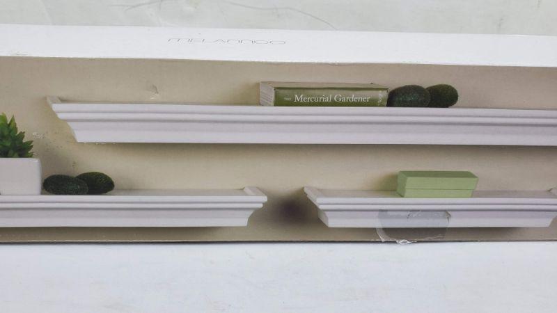 White Floating Melannco Set of 4 Wall Shelves in Assorted Sizes - New