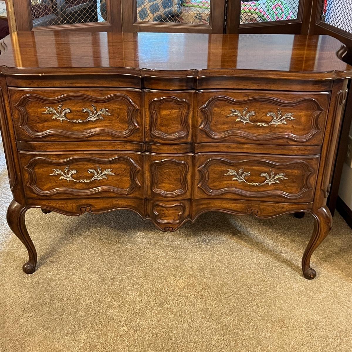 Vintage White Furniture French Provincial Style Walnut Bombe Accent Chest