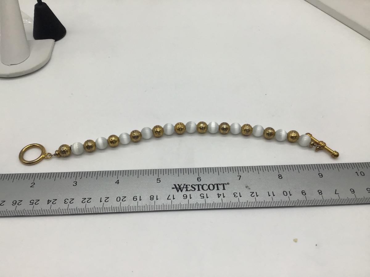 White Glass and Gold Metal Beaded Bracelet