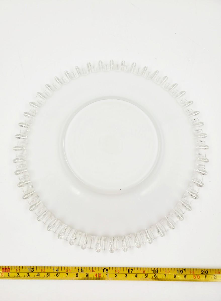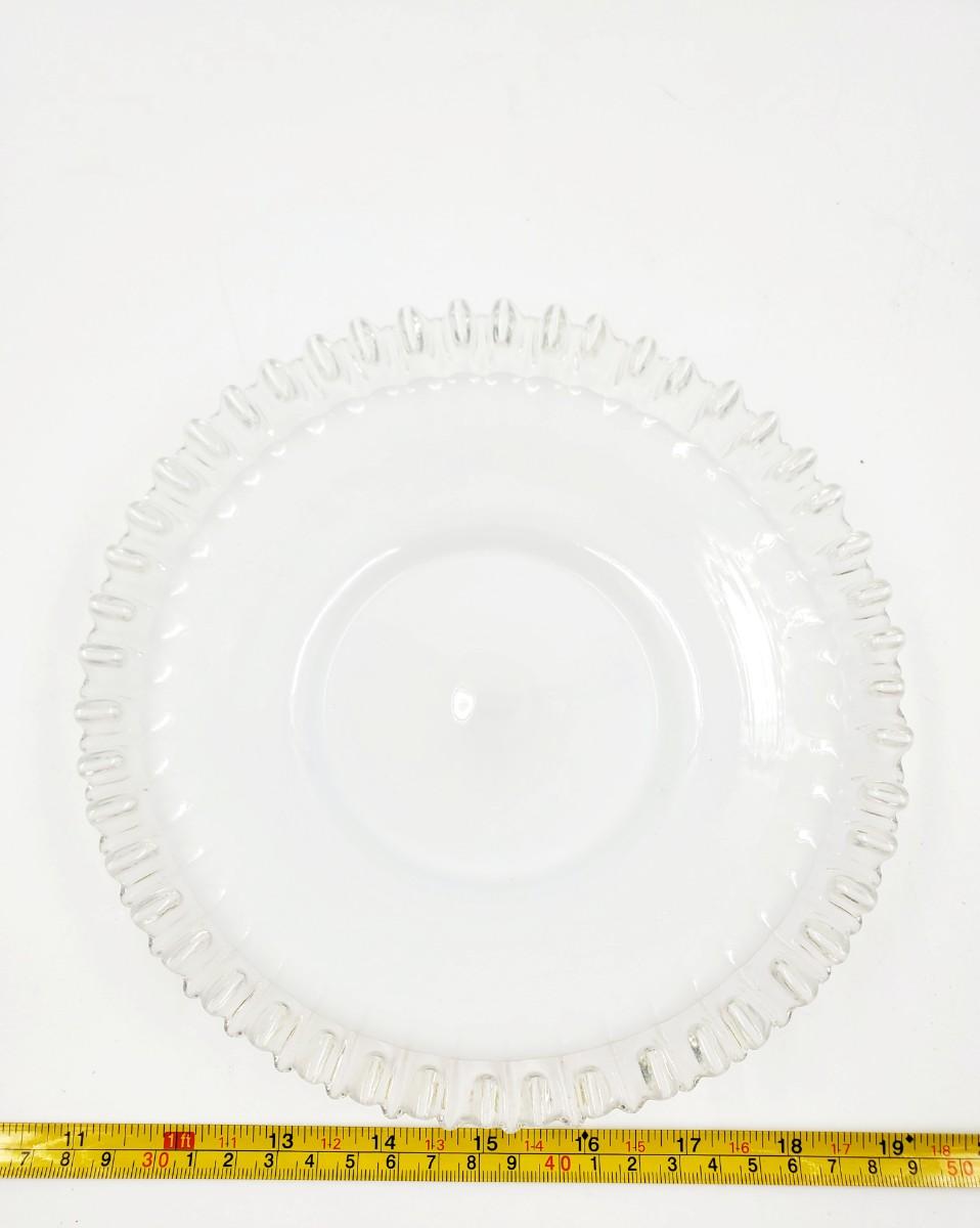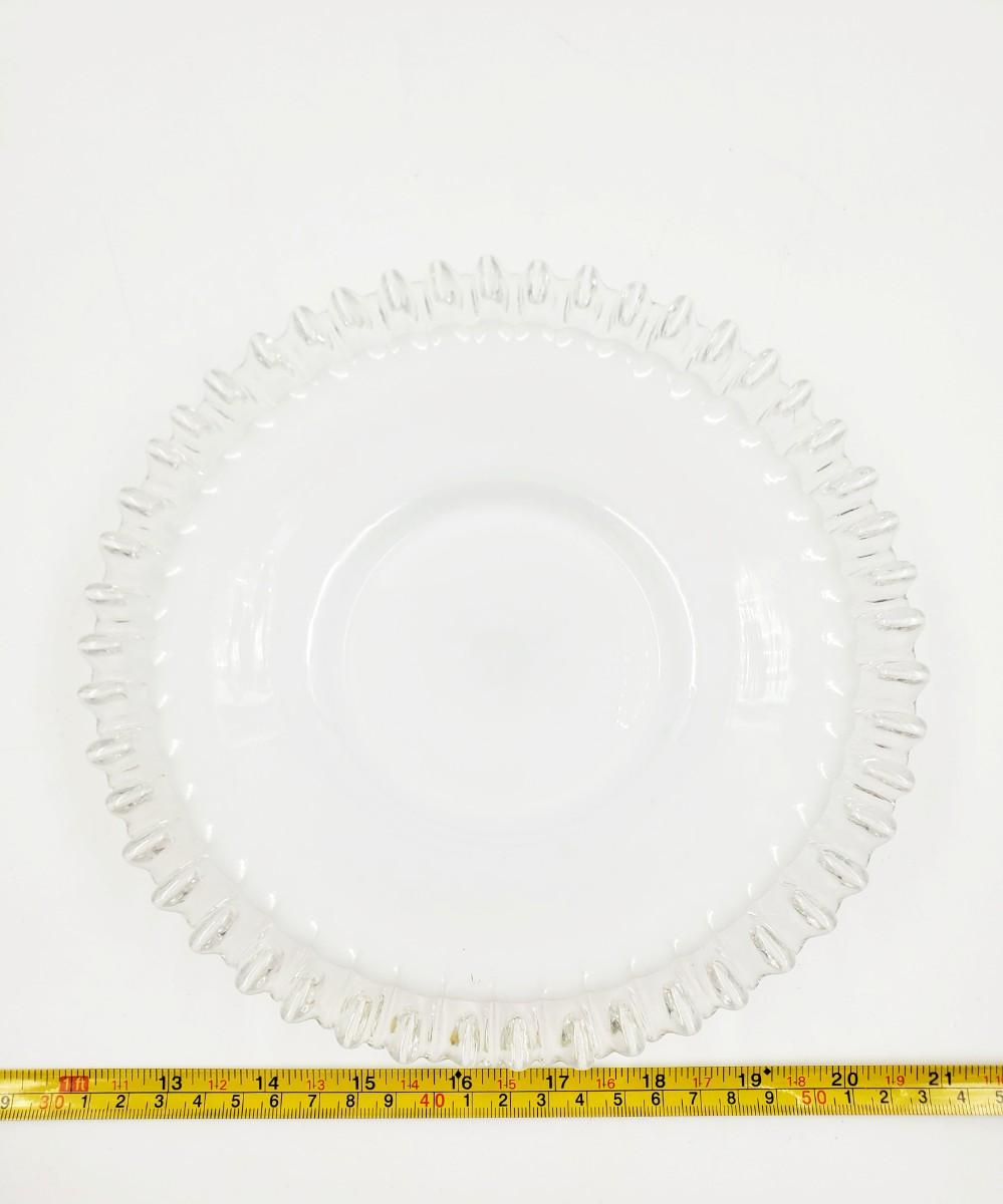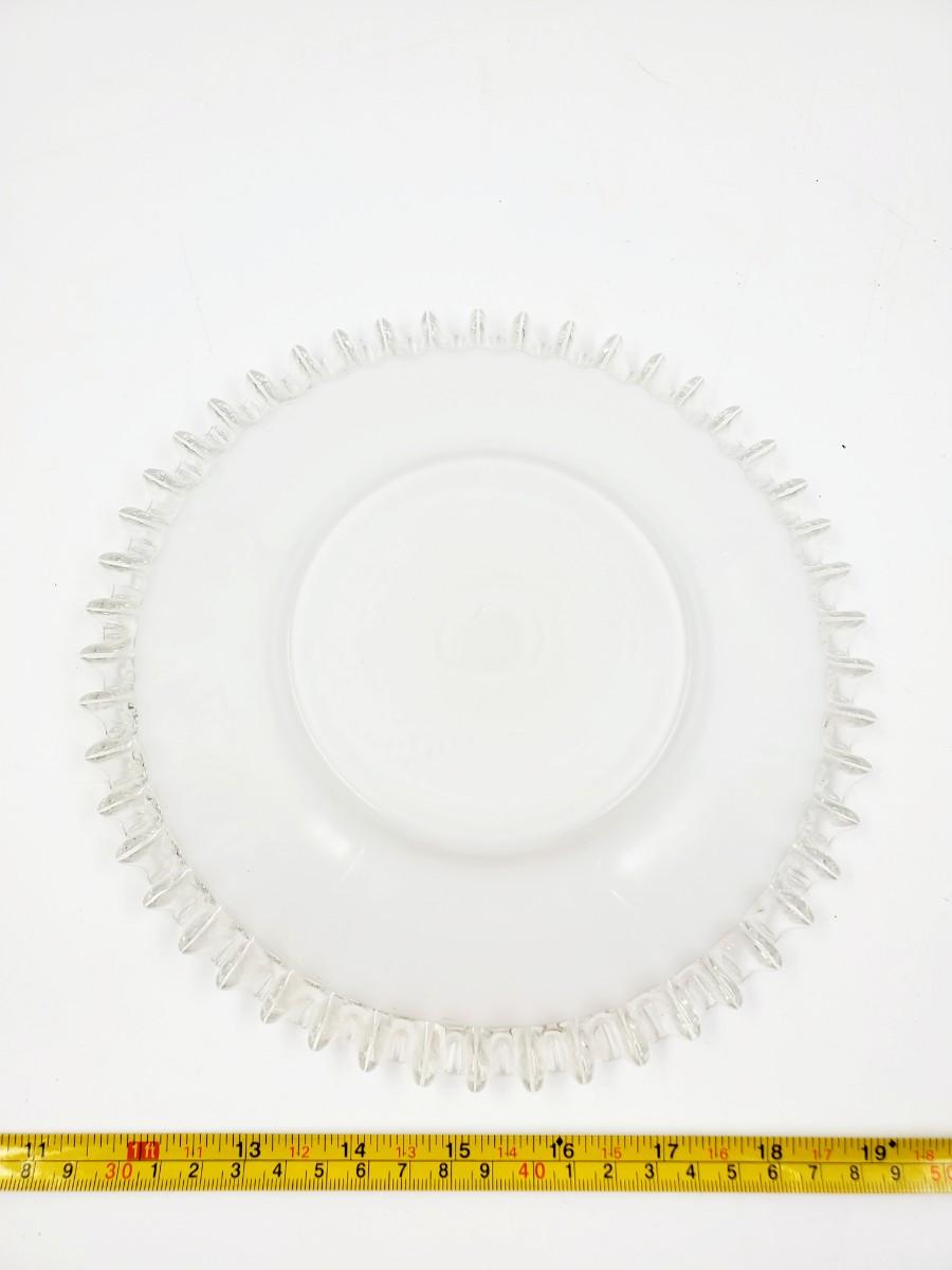 WHITE GLASS BOWL AND 2 PLATES WITH RUFFLED SILVER CRESTED EDGE