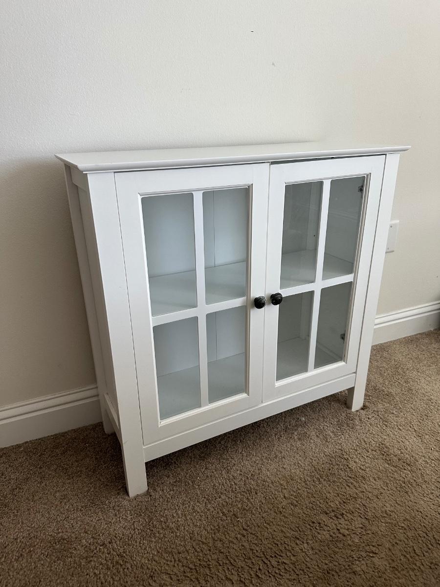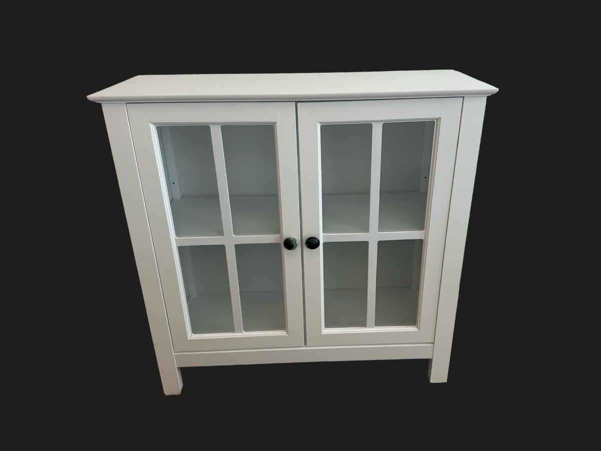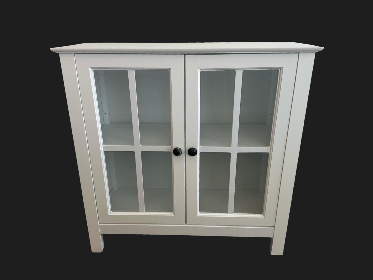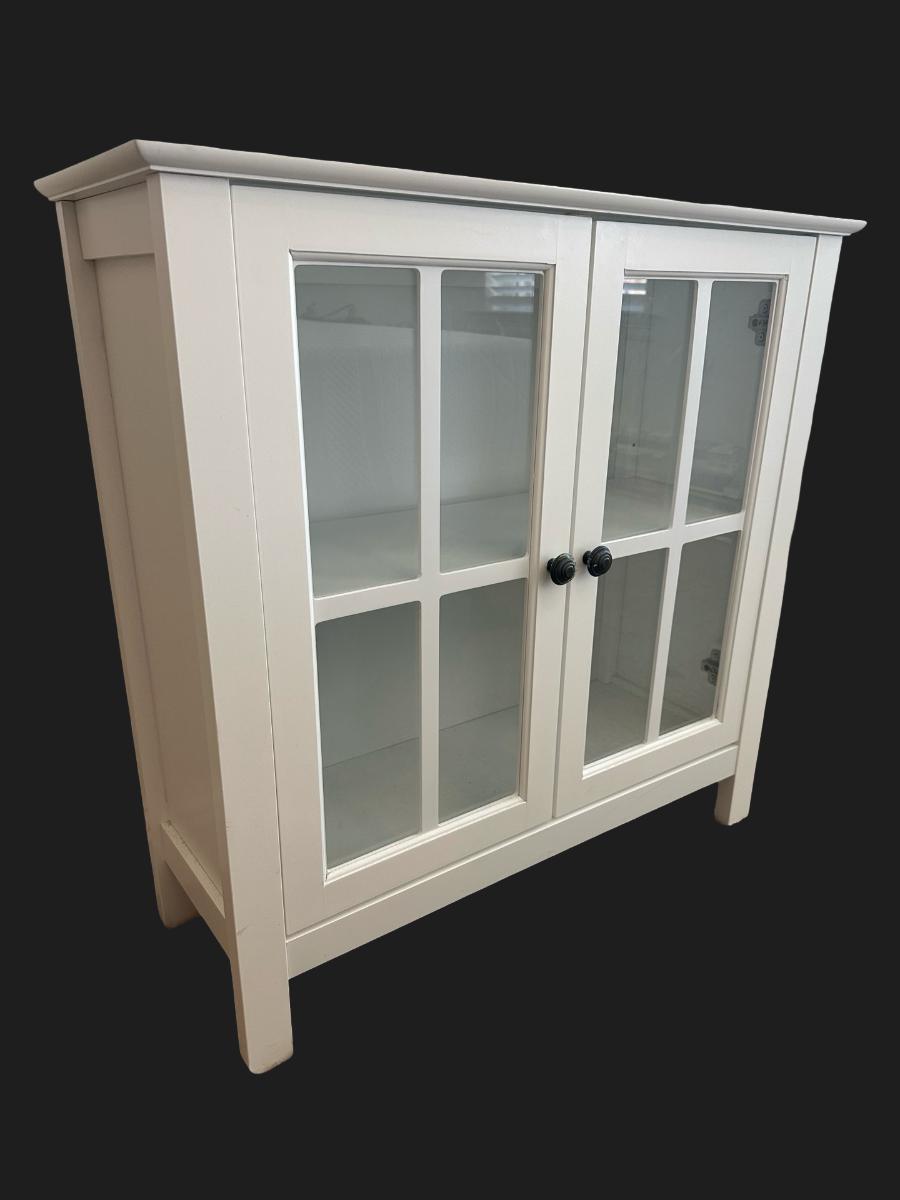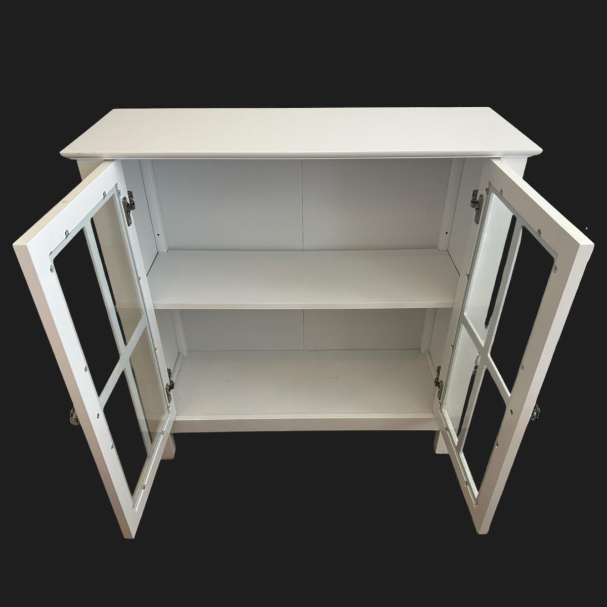 White Glass-Pane Display Cabinet with Double Doors