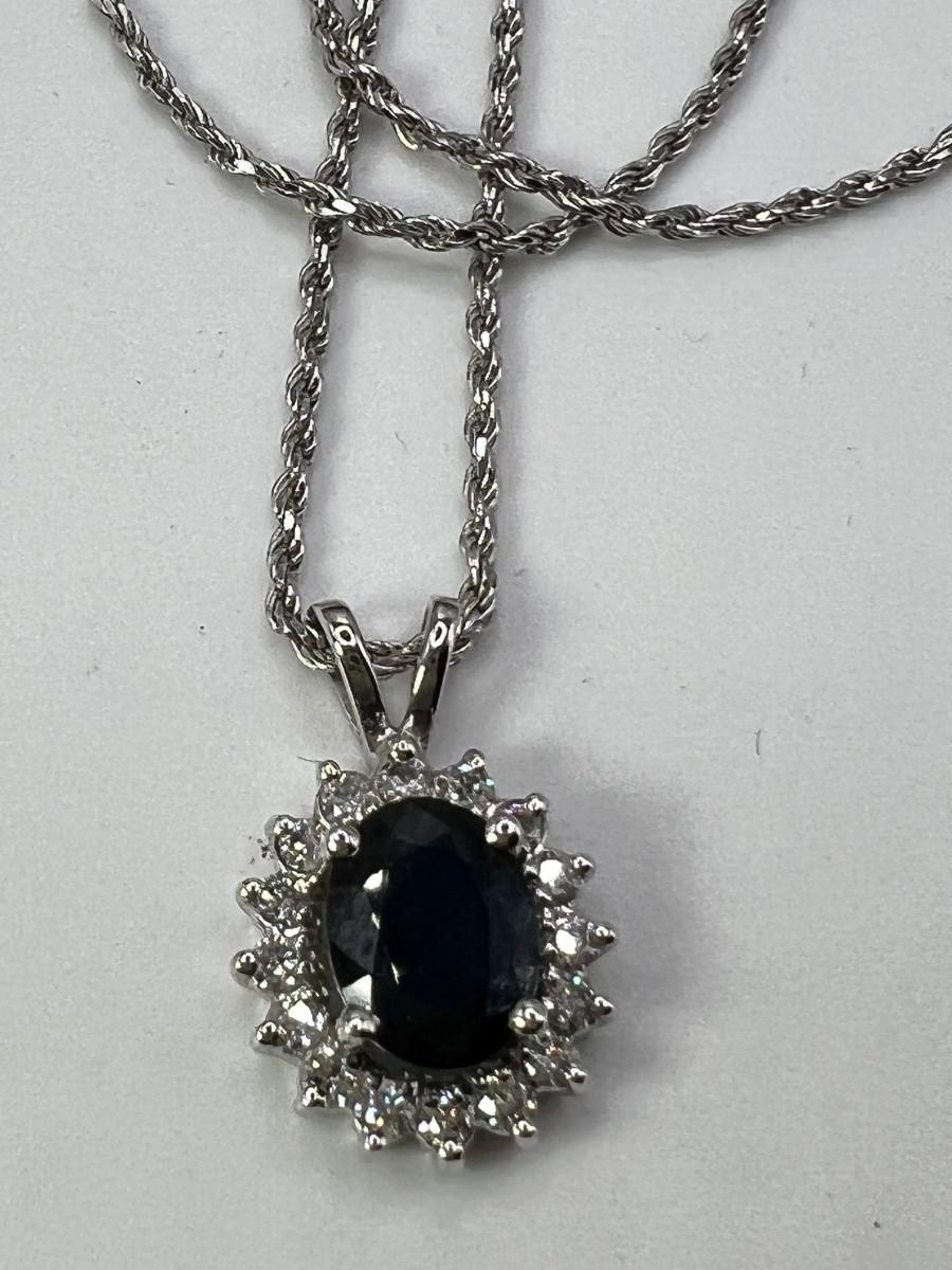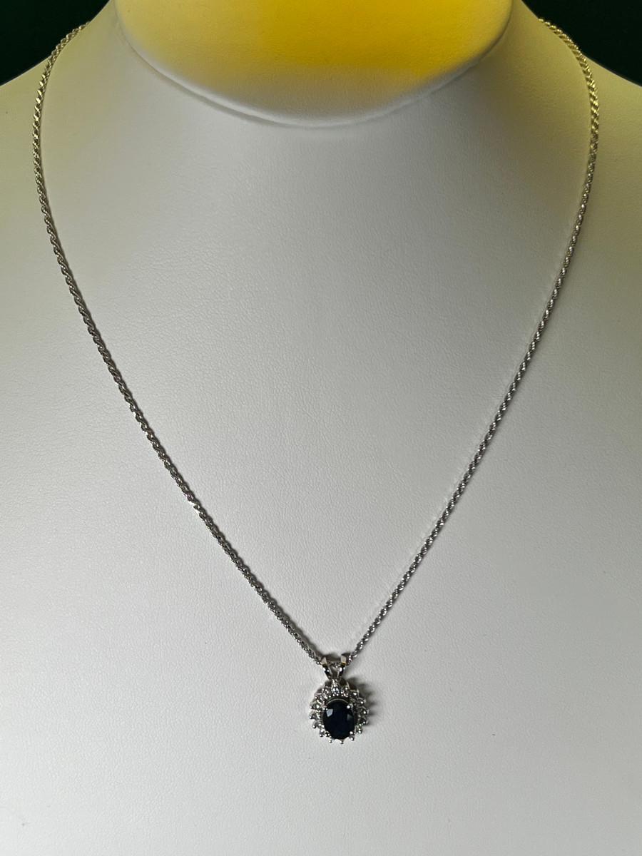 White Gold 14K and Sapphire Pendant on Diamond Cut 18" 14K Chain