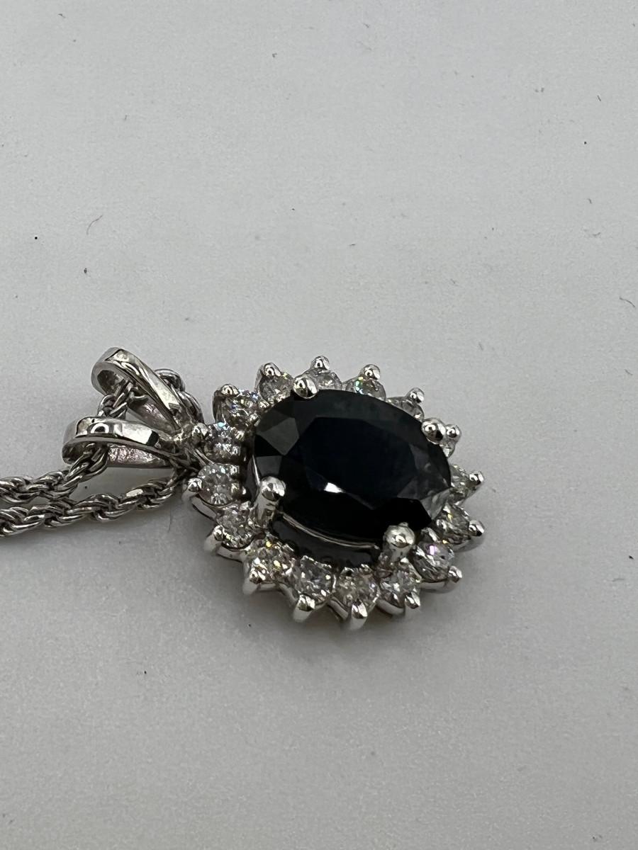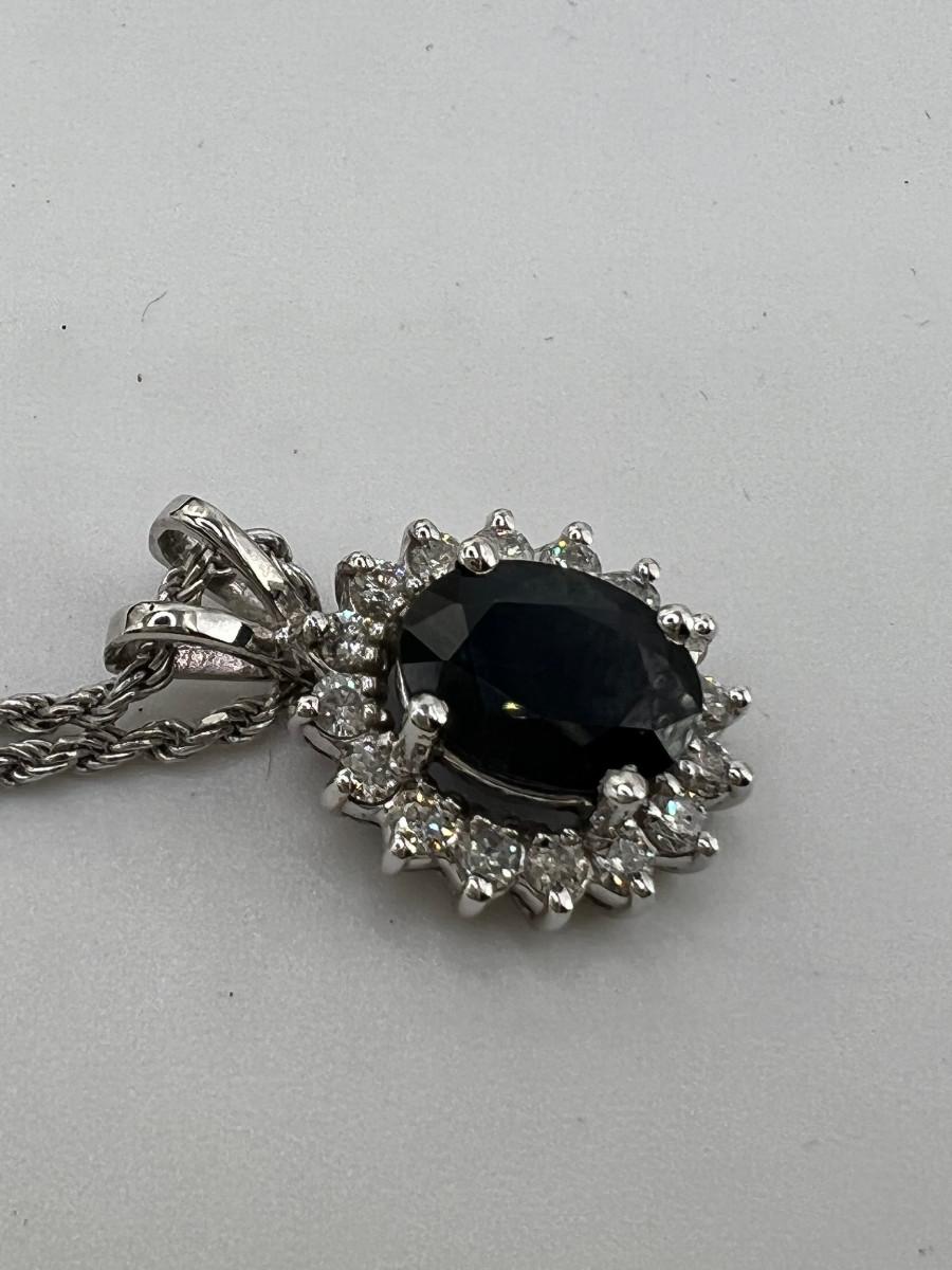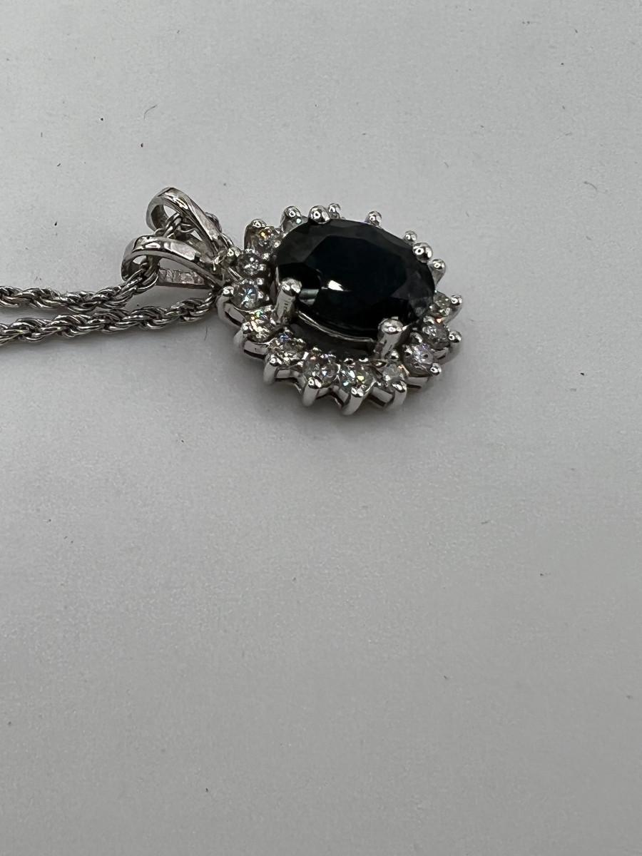 Pendant 6 Diamond Dark Blue Sapphire 1/2 CT I1-I2 Color 6.39 Gross Grm wt