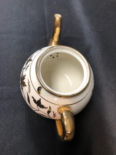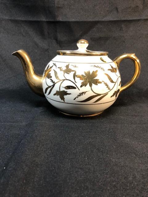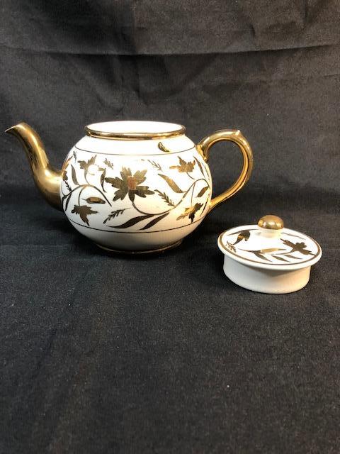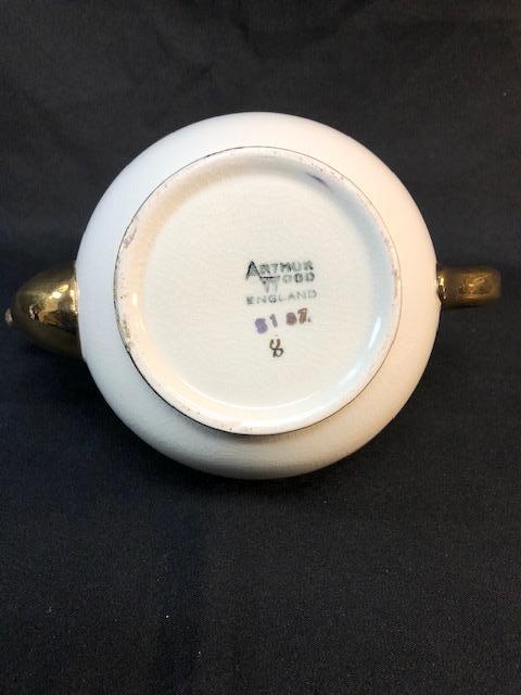 White & gold Arthur Wood Tea Pot. Leaf design pattern. Previously owned condition. Clean inside. Made in England.