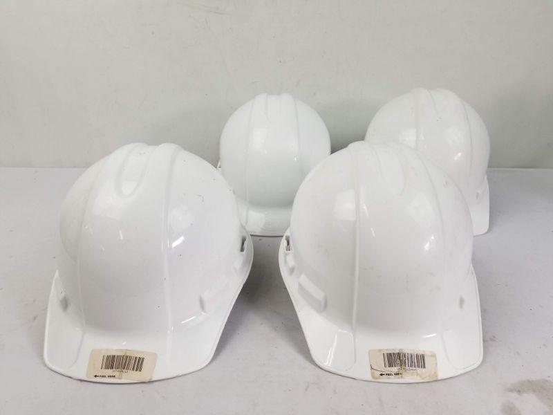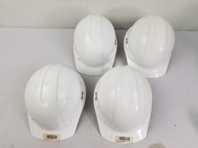 White Hardhats, Adjustable Sizing, Quantity 4
