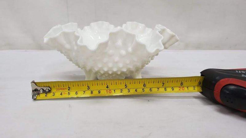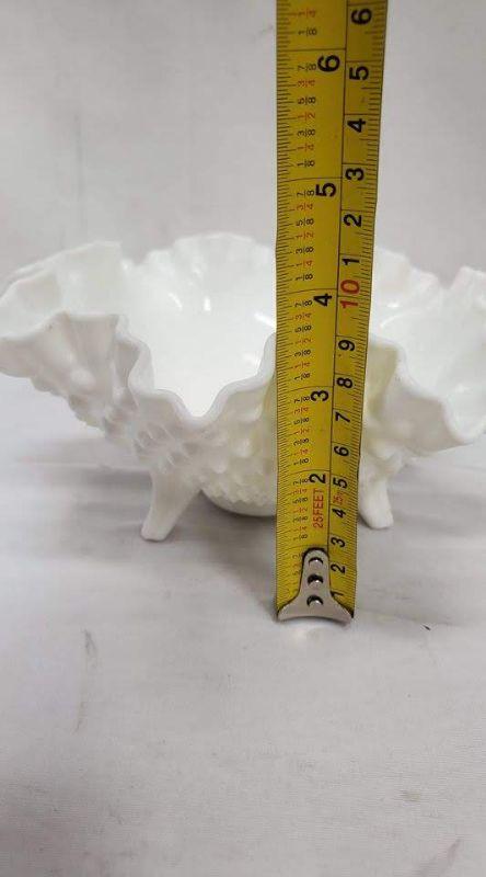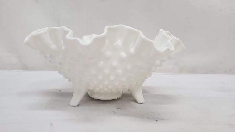 White Hobnail 3-Toed Candy Dish, Ruffled Crimped Edge, Nut/Candy Dish, Unmarked
