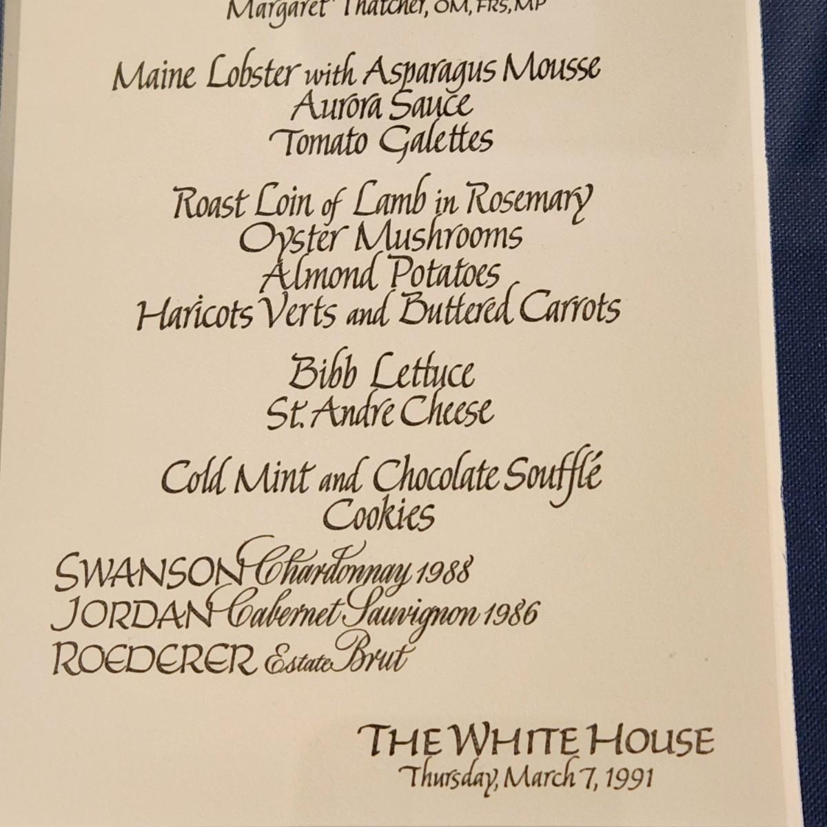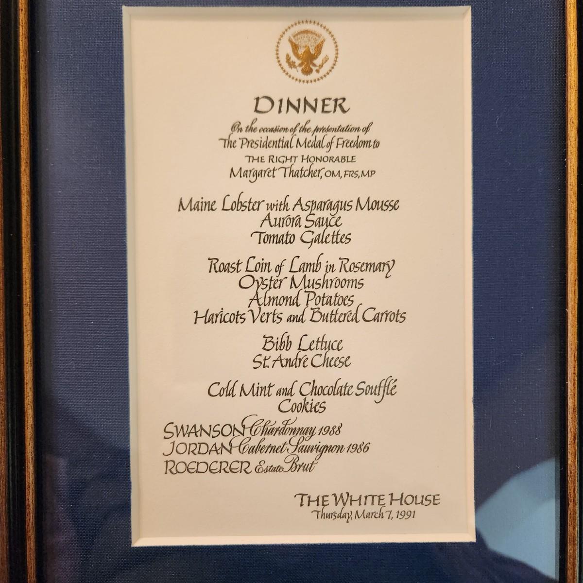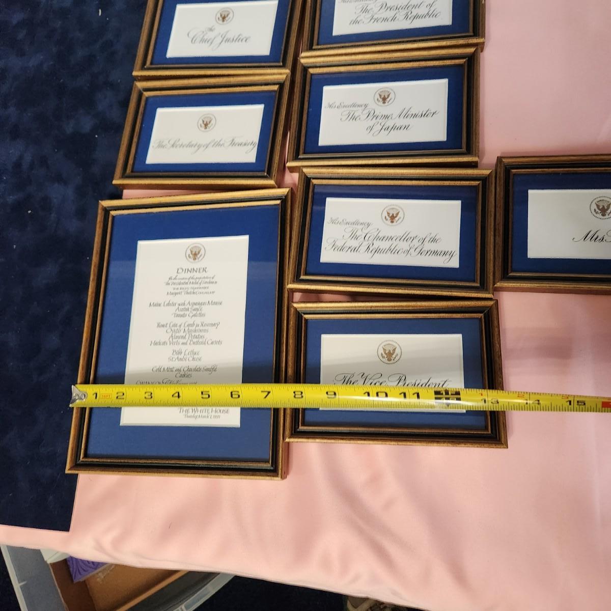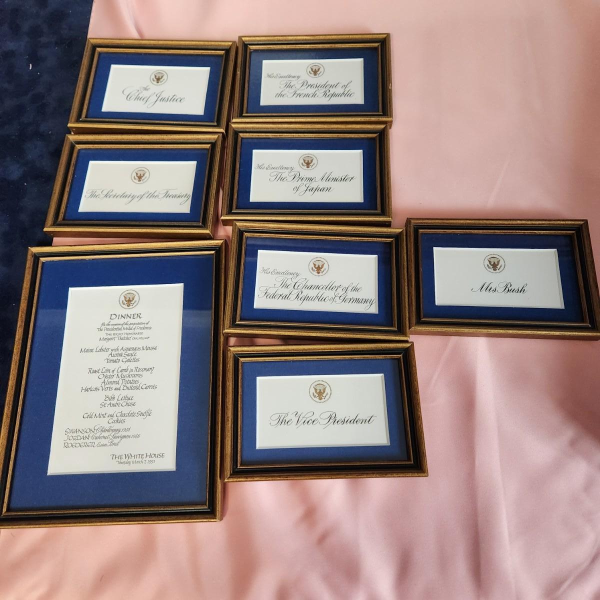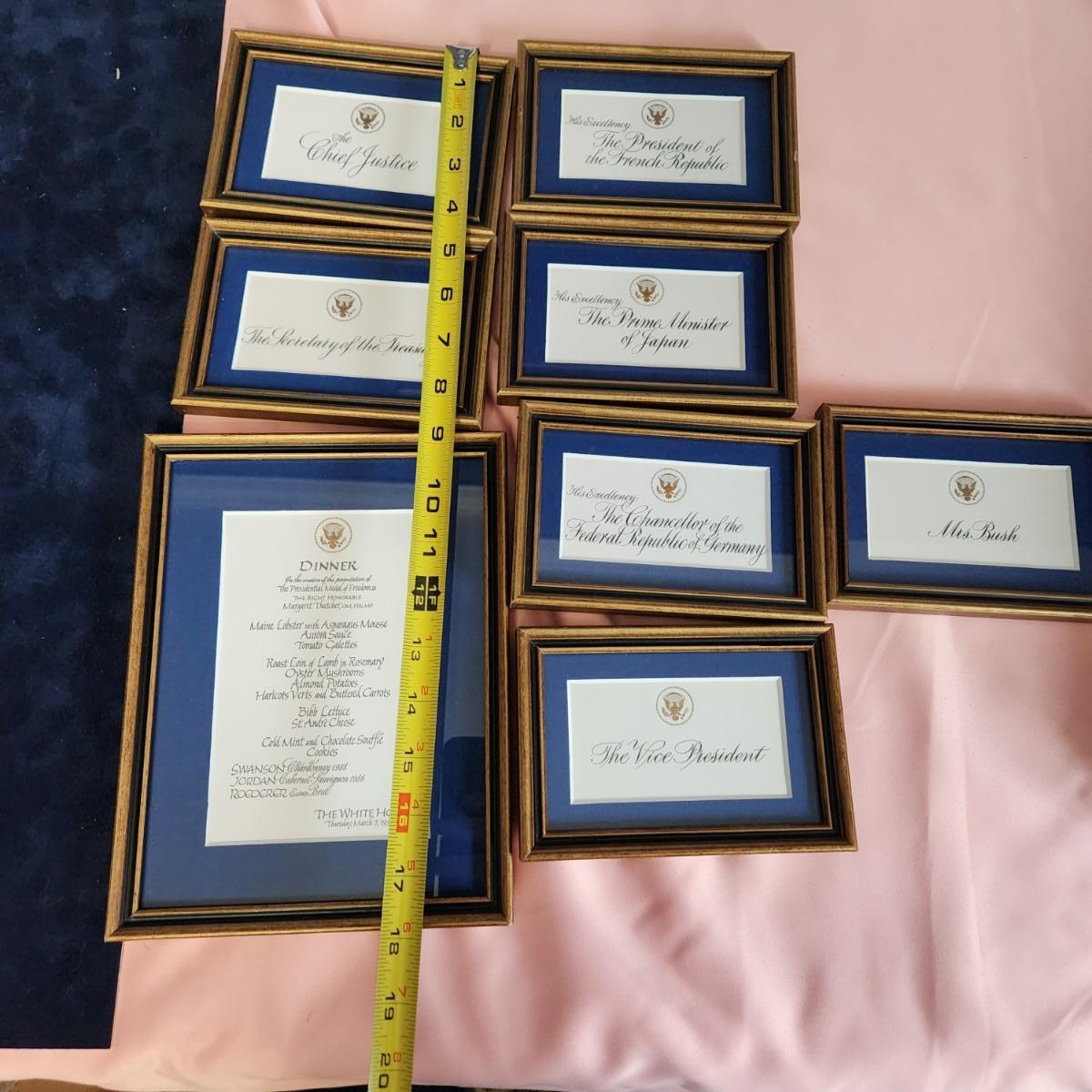White House Menu Card and Name Place Cards Framed March 7 1991