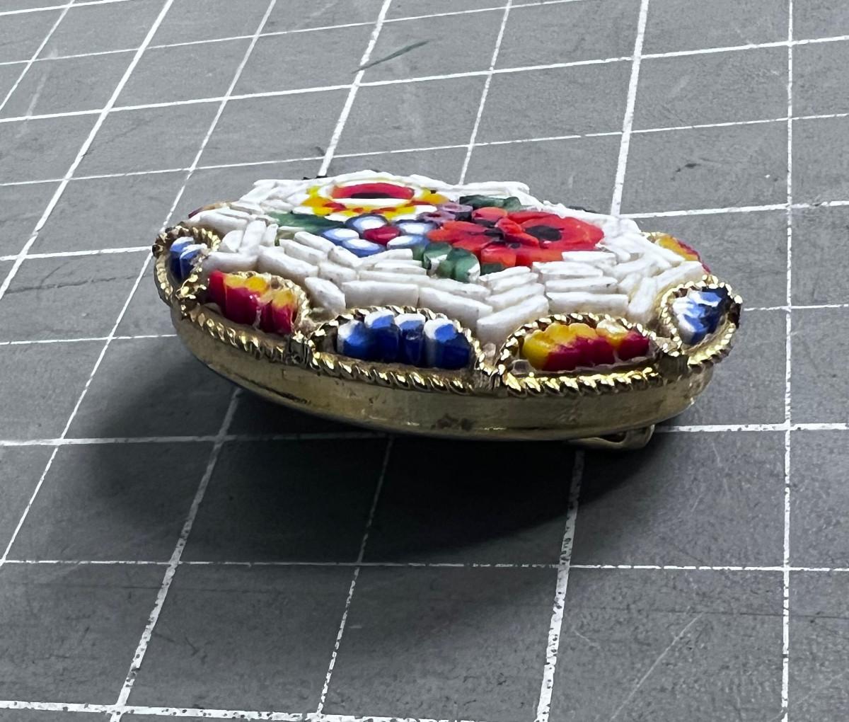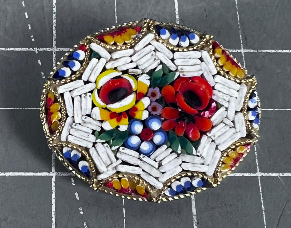 White ish -Vintage Italian Glass Micro Mosaic Brooch