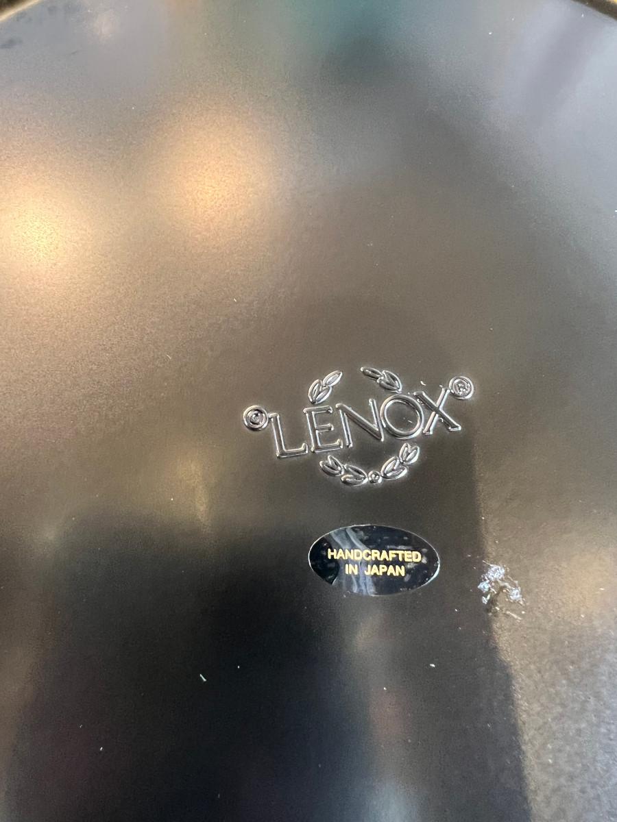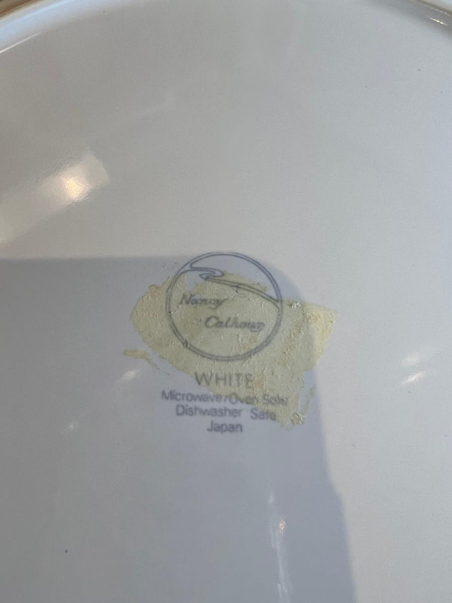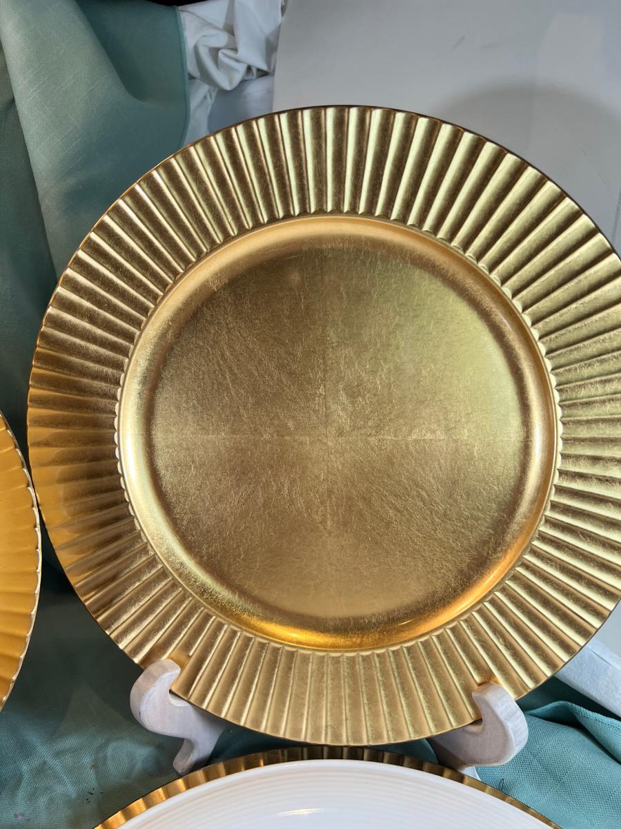 White Nancy Calhoun Japanese Dinner Plates and 6 gold Lenox Chargers