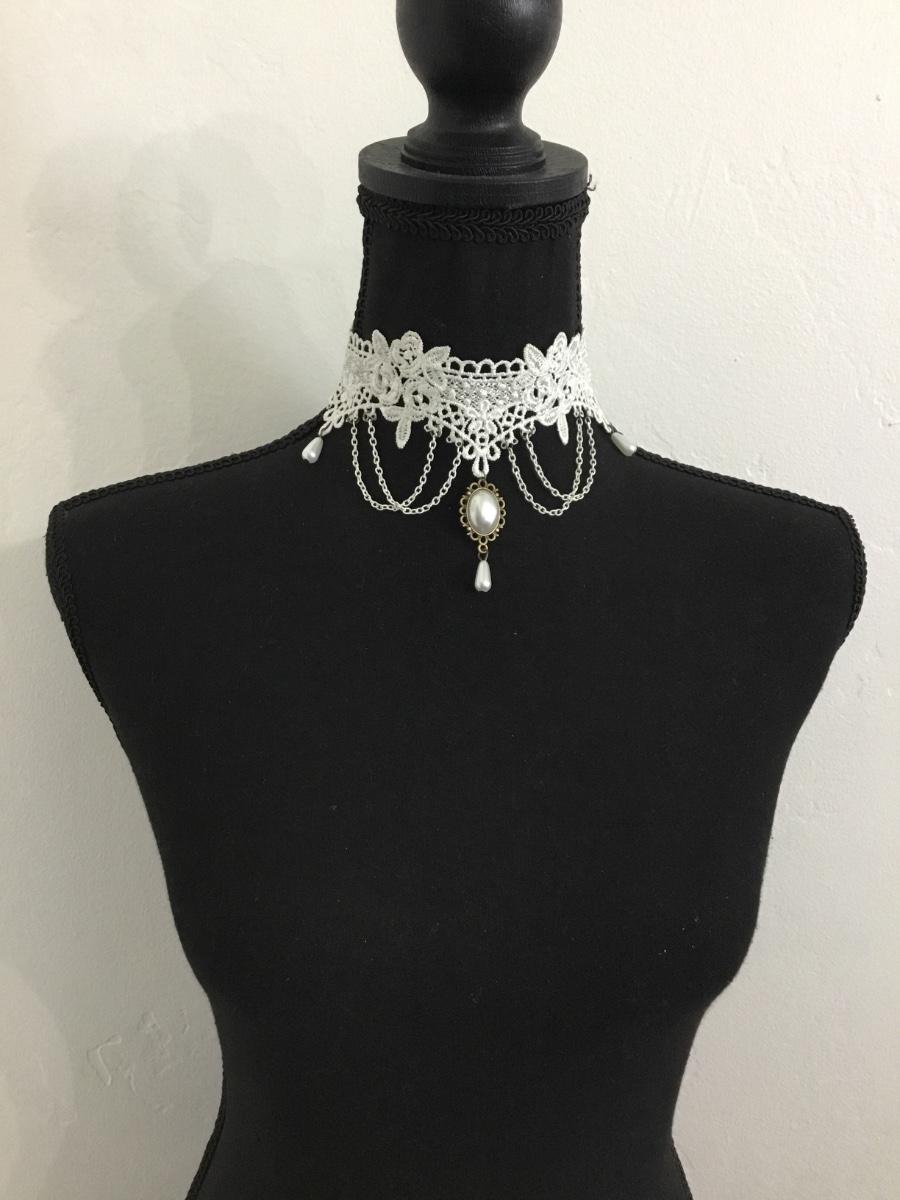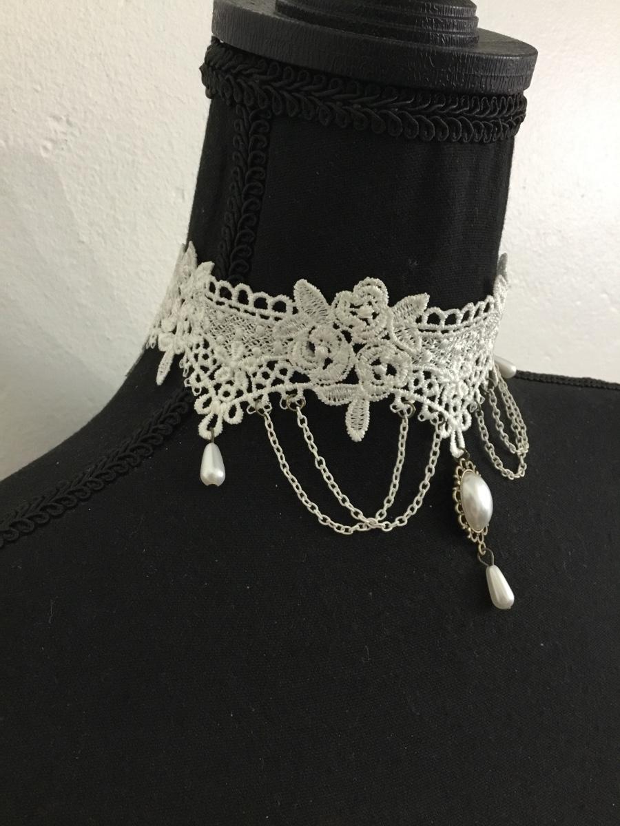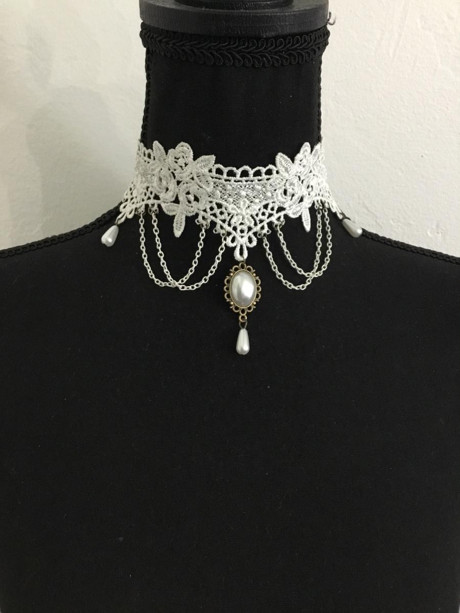 White lace , Victorian style pendant, statement, choker