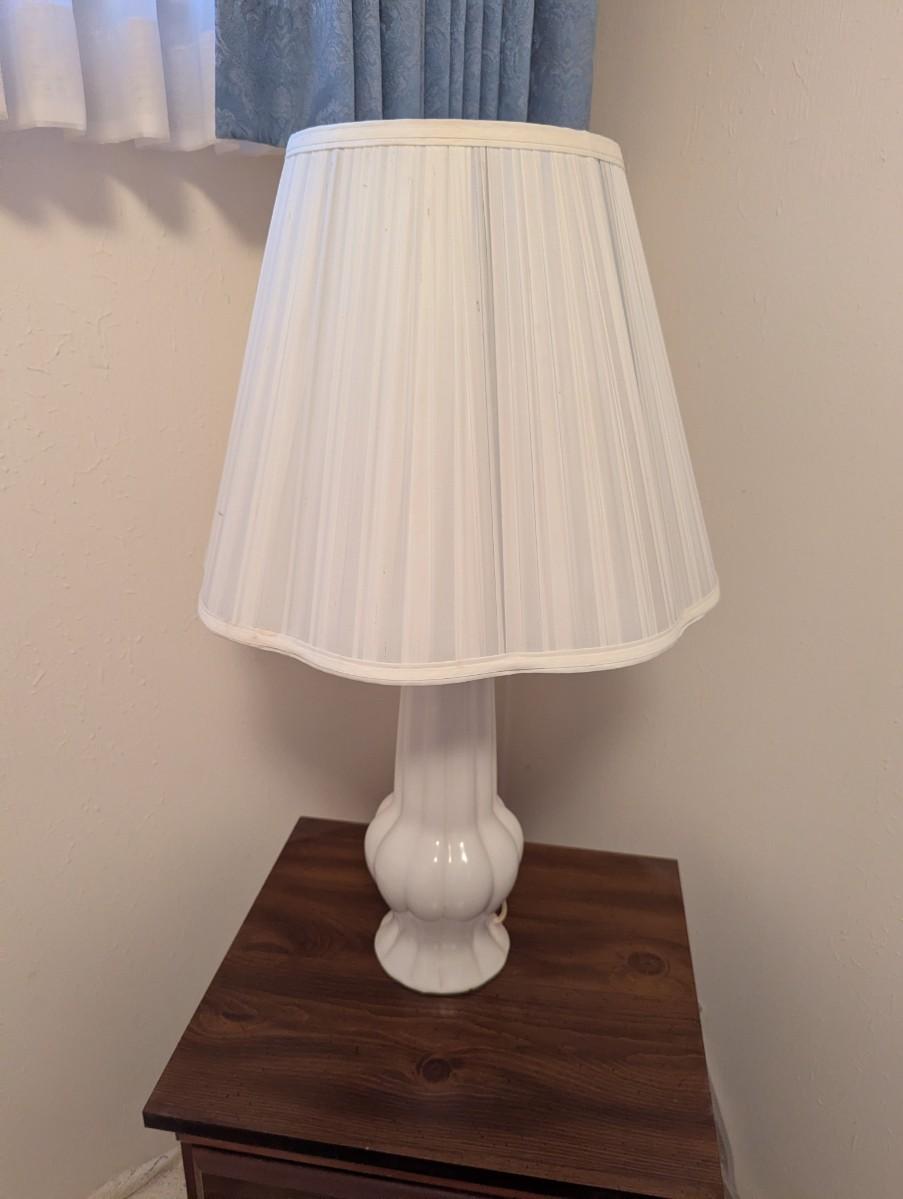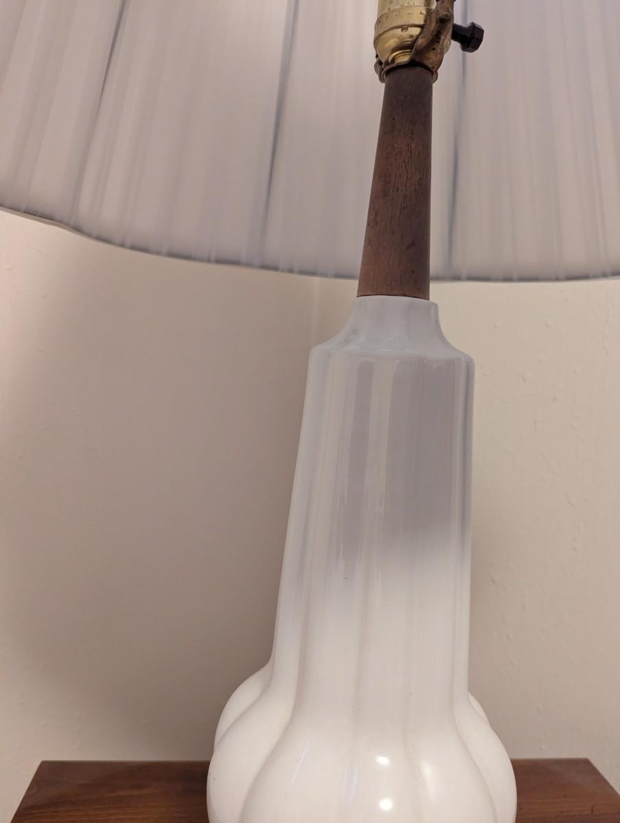 .This white mid century lamp is a classic look and would a great addition to any room. It does work.