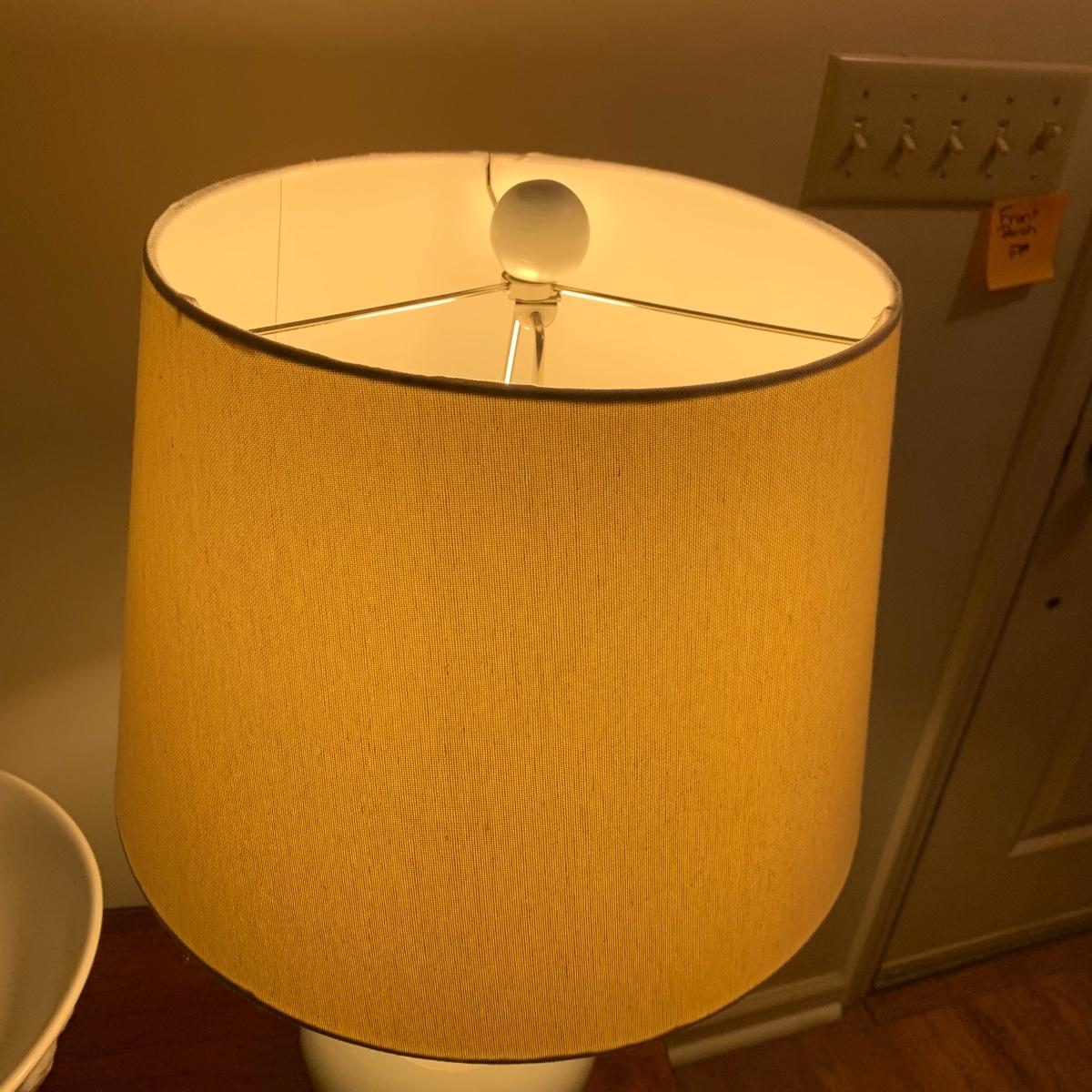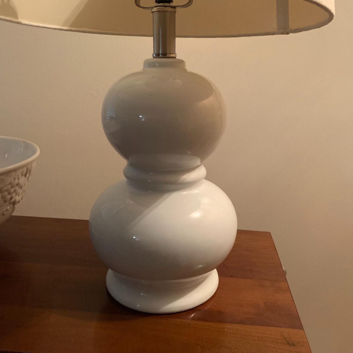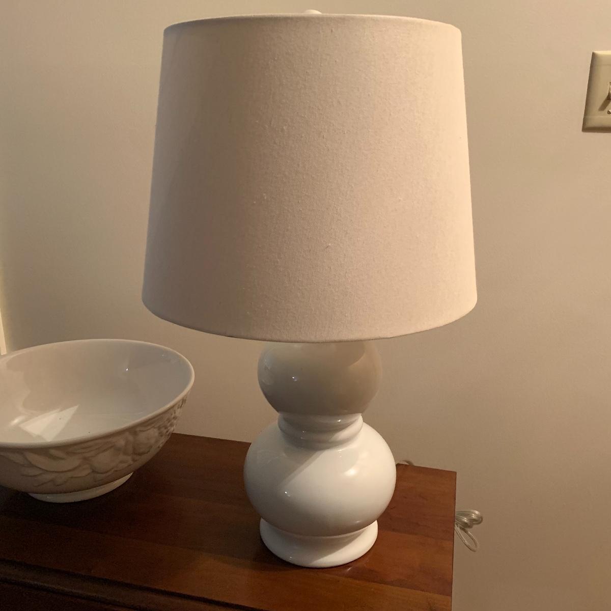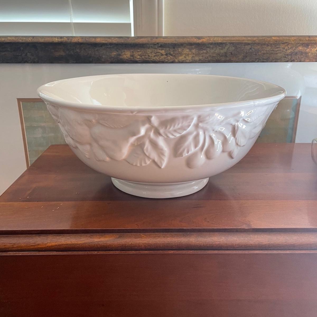 Large white ceramic lamp with round shade and three way switch stands 23” with a 11” diameter shade. The Italian made bowl measures 13” diameter x 6” tall. Local pick up only.