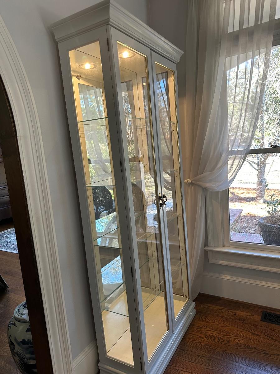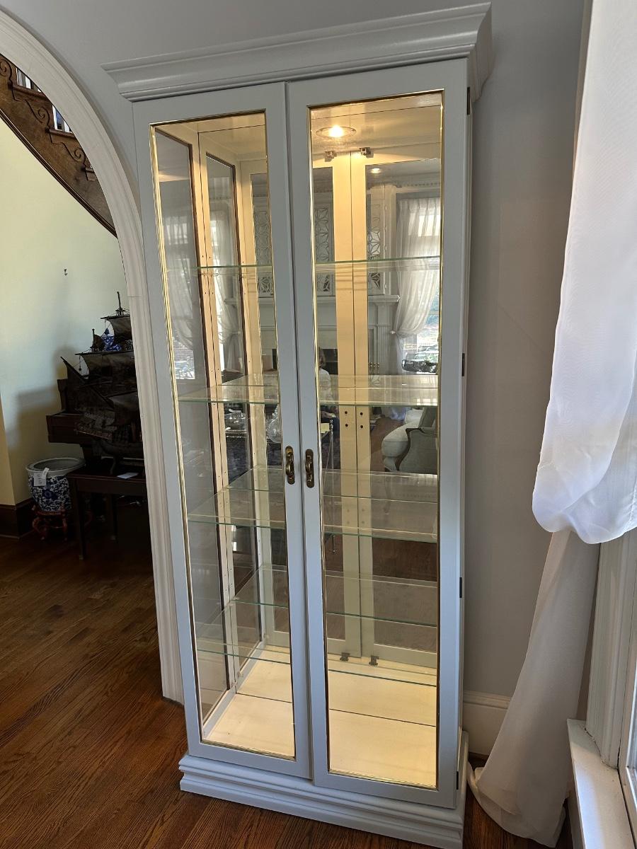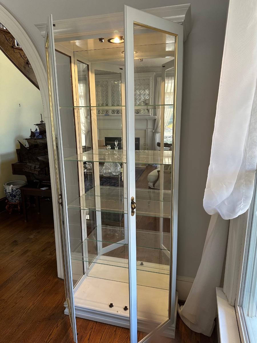 WHITE LIGHTED CURIO CABINET 33X12X76