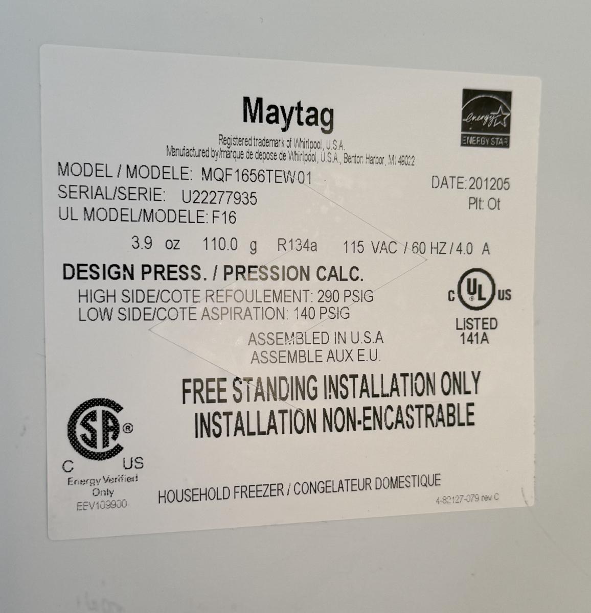 White Maytag Freezer