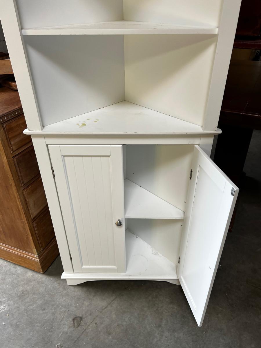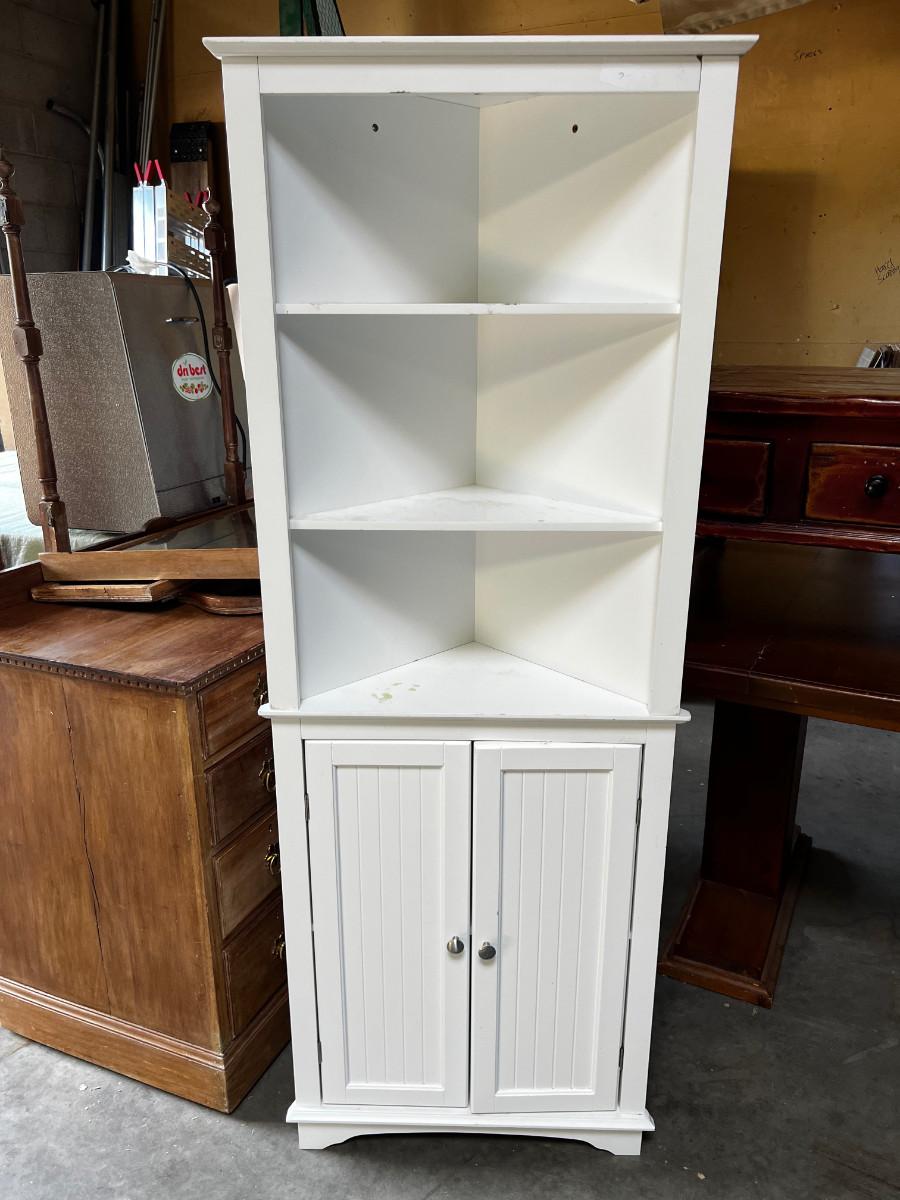 White Melamine Corner Shelf with Door & Shelves (2) Pieces Stacked