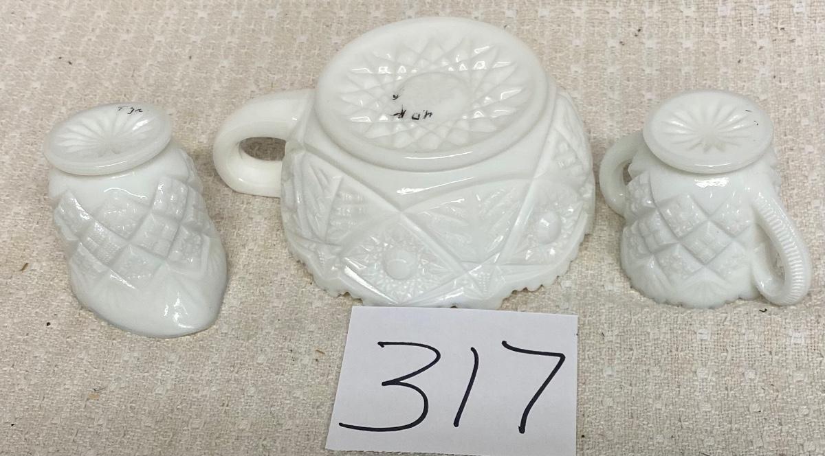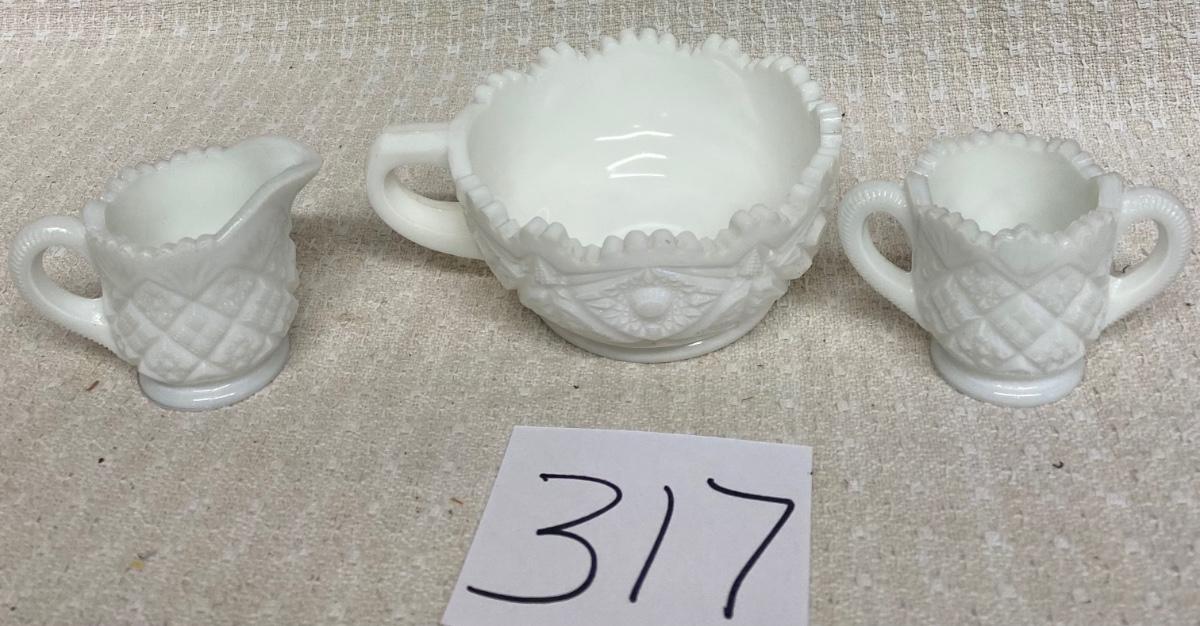 White Milk Glass Berry Bowl with a Handle And Vintage Creamer & Sugar Bowl Set