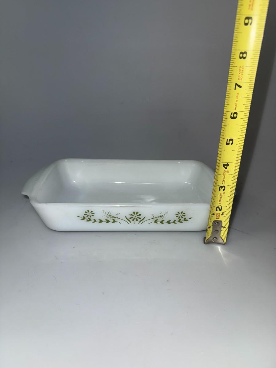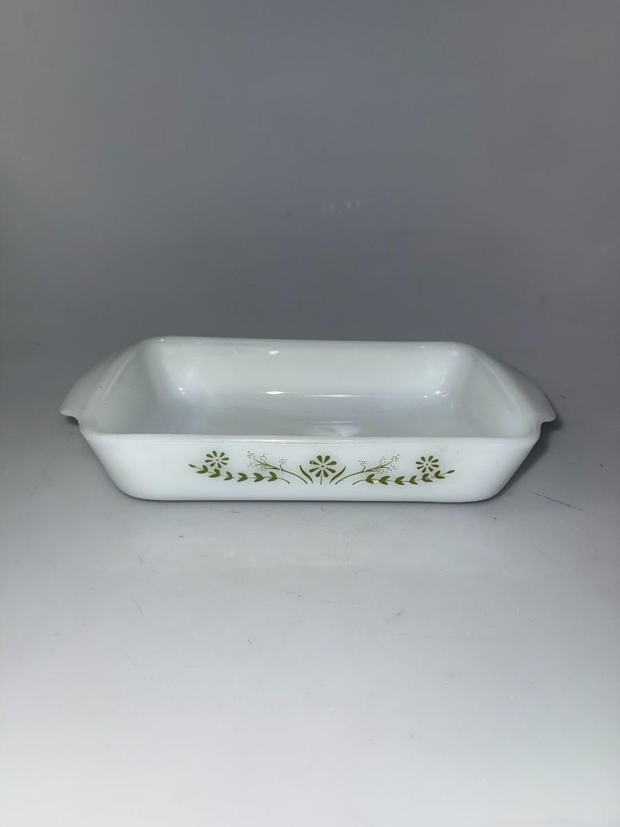 White Milk Glass, Glasbake Green Flower, Meatloaf, Bread Loaf Pan, Casserole Dish, Vintage Kitchen Tool