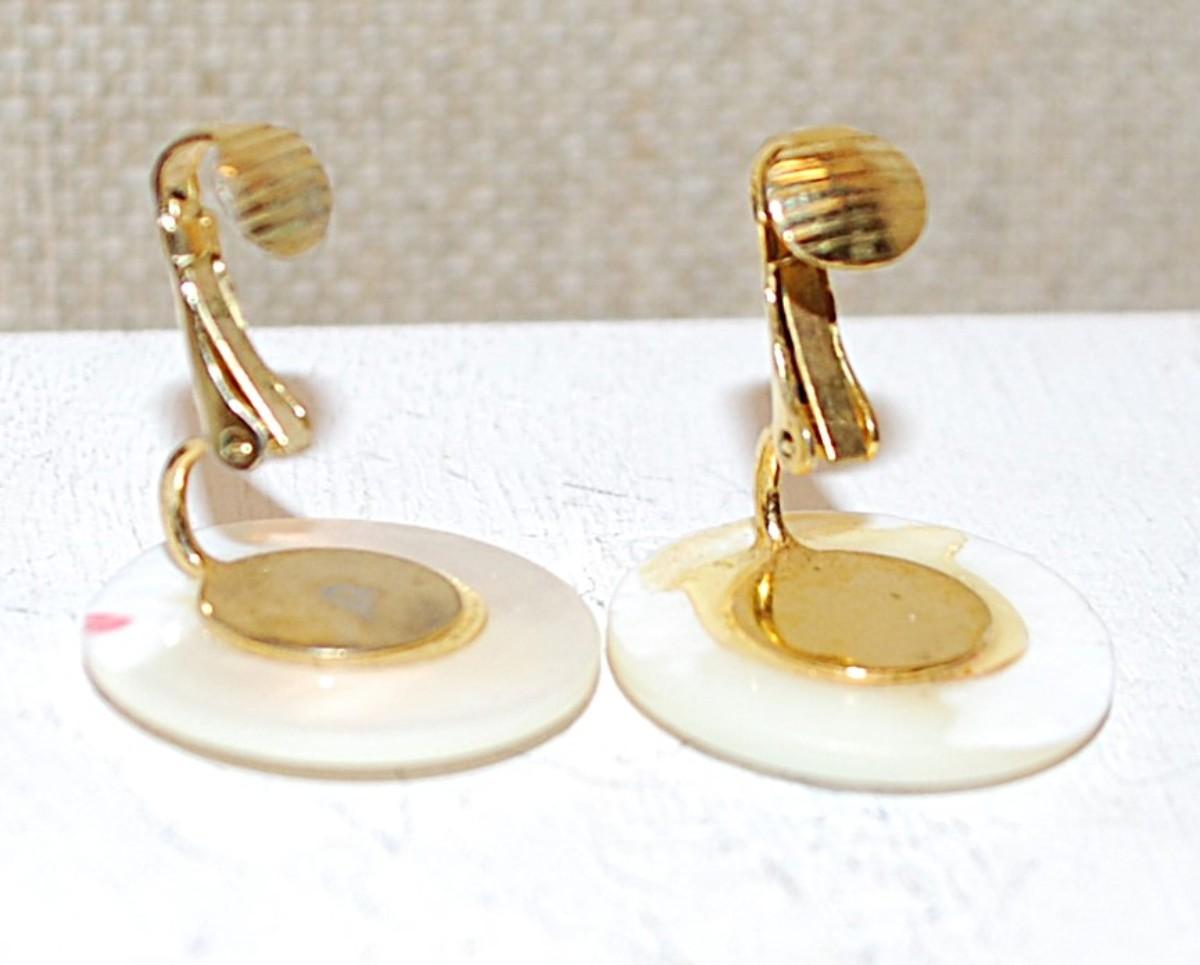 WHITE "Mother-of-Pearl" Style Earrings (¾" Circ.) on a Hinged Snap Clasp