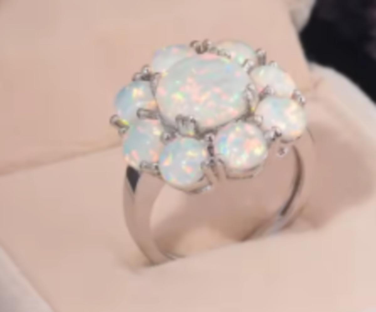 White Opal Flower Setting Cocktail Ring 925