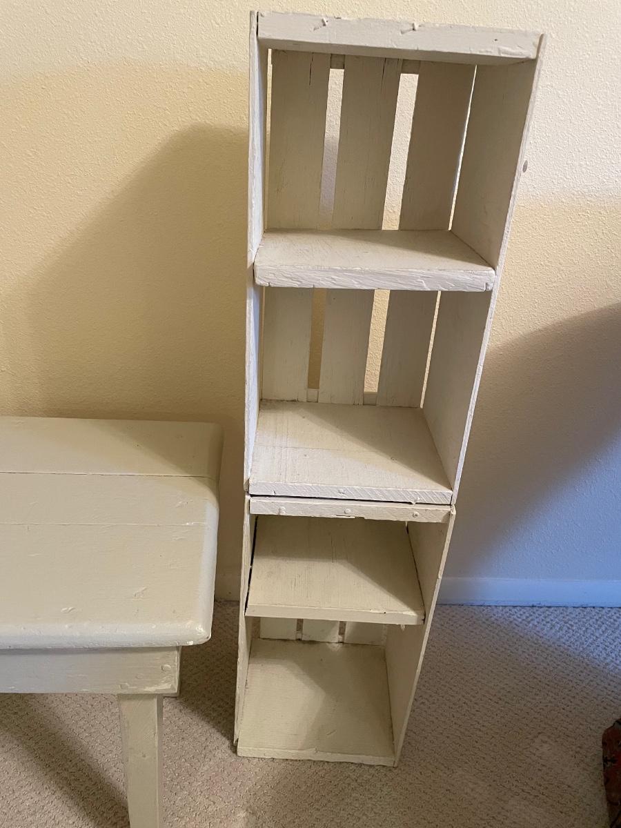 2 small tables and shelving