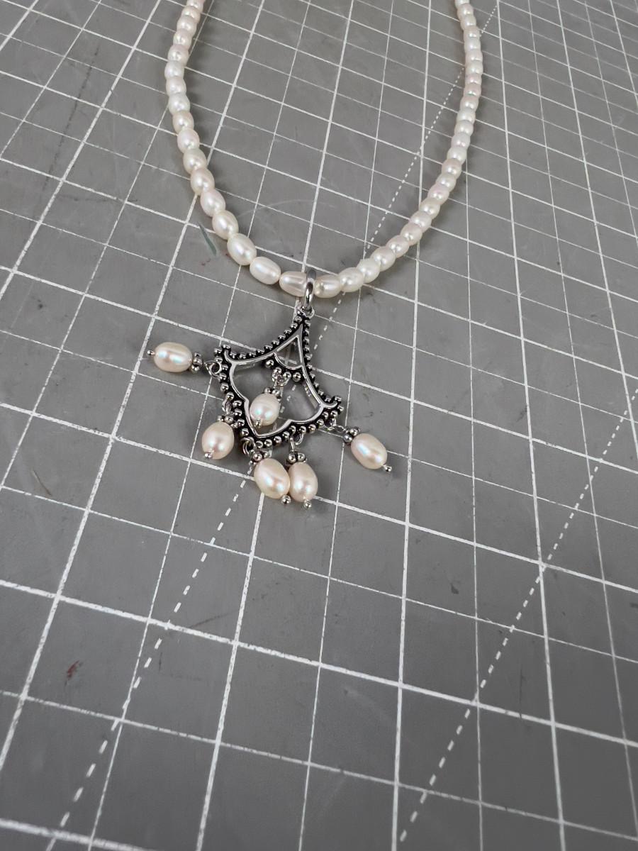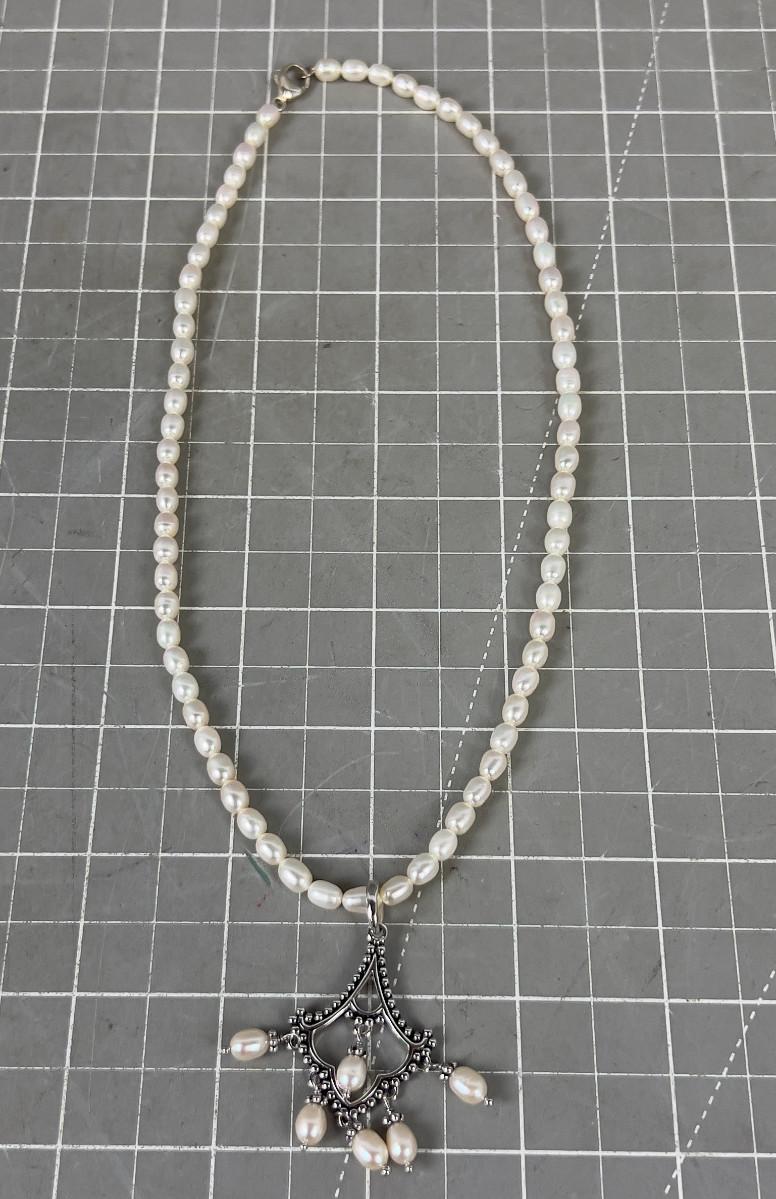 White Pearl  Necklace with Sterling and Pearl Pendant