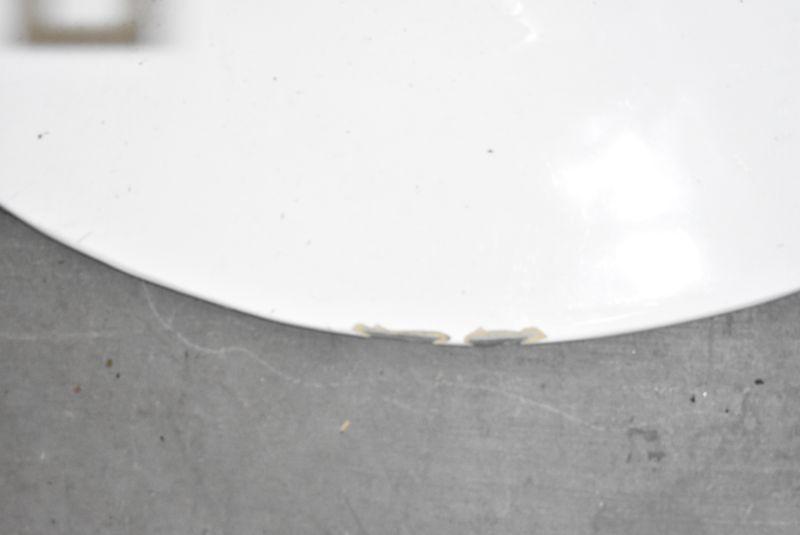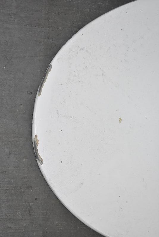 White Pedestal Table Base, Ceramic Coated Metal, Chipped Edges