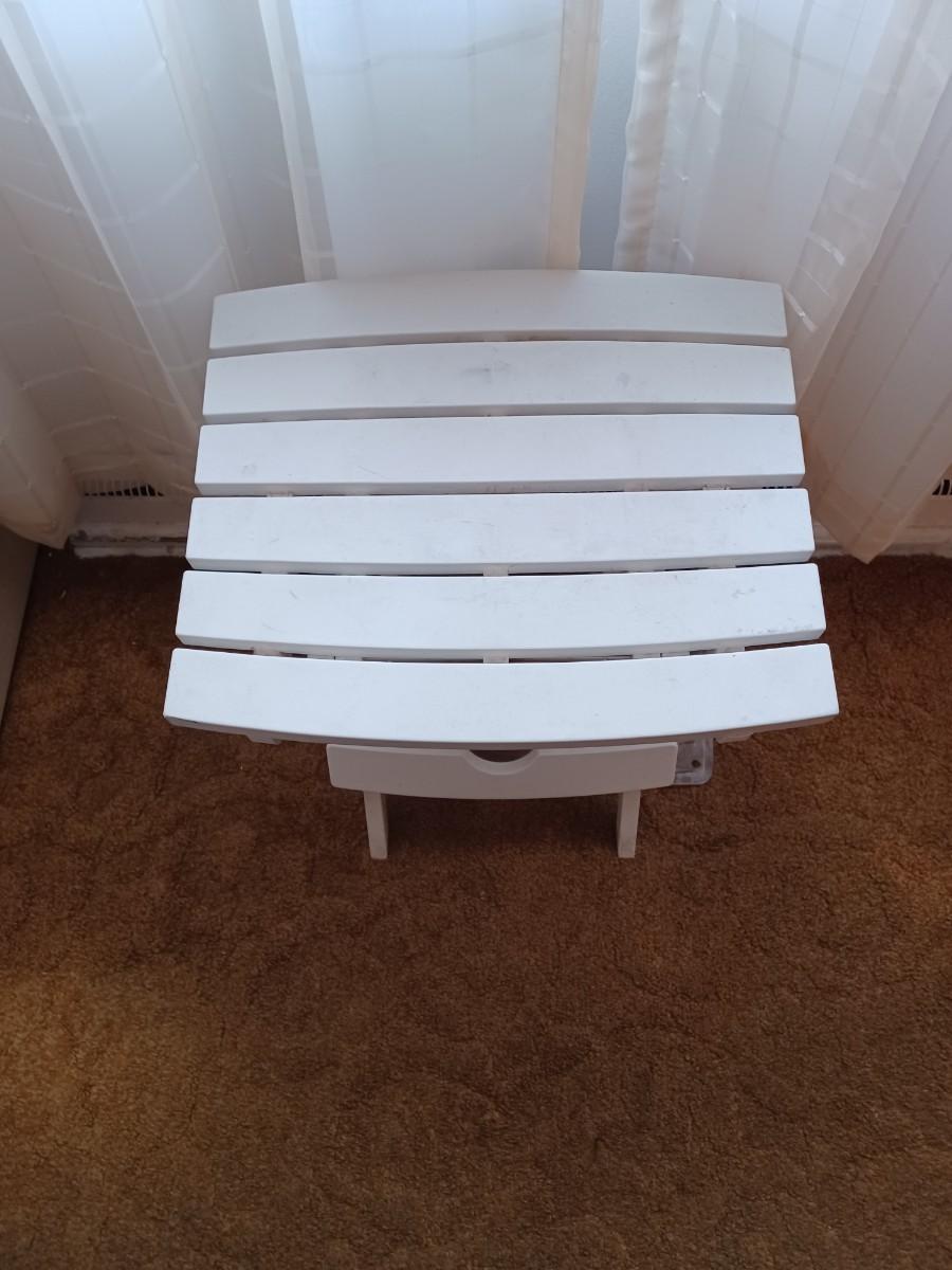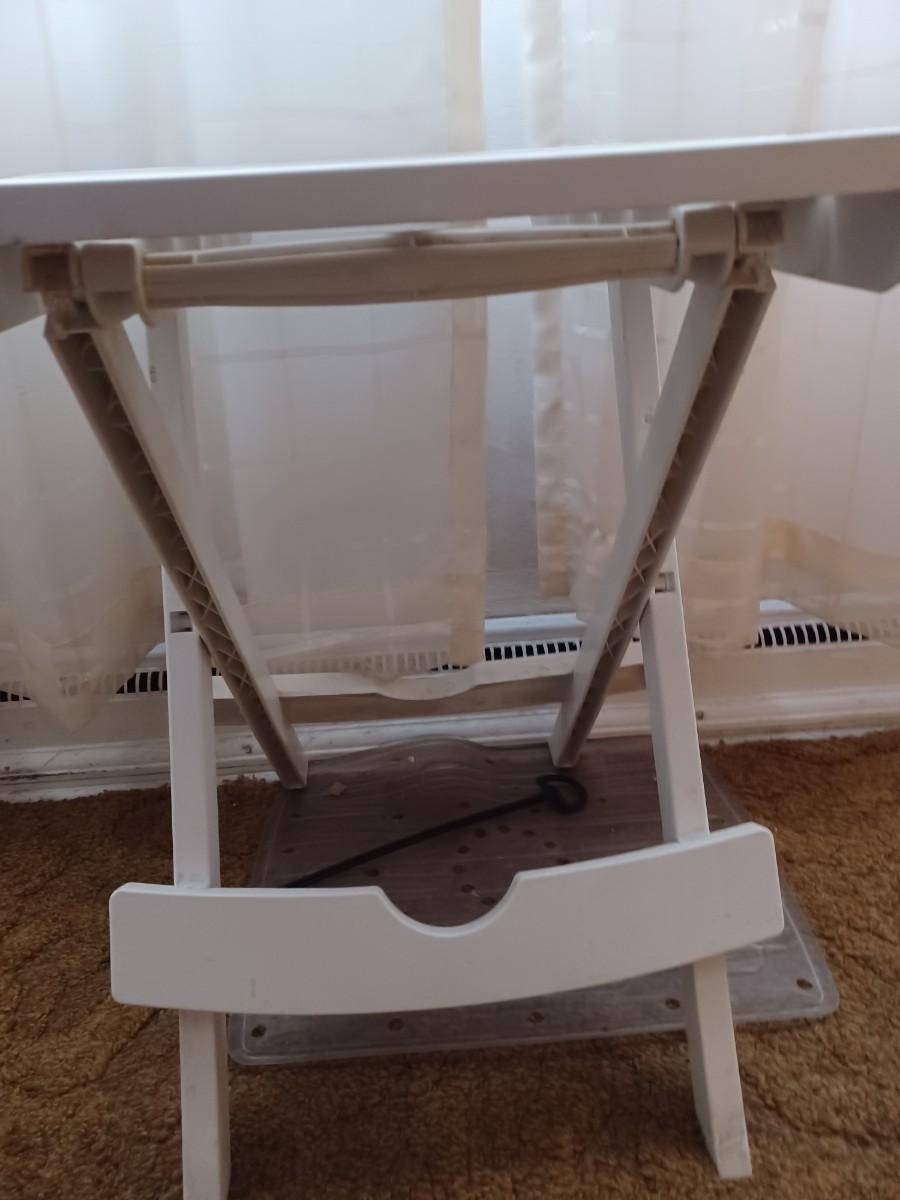 white plastic tv stand