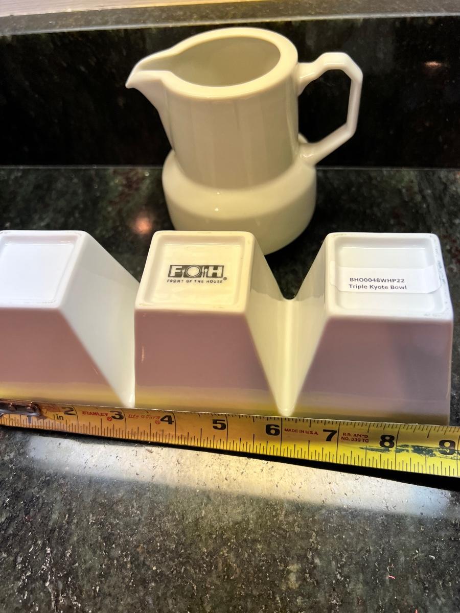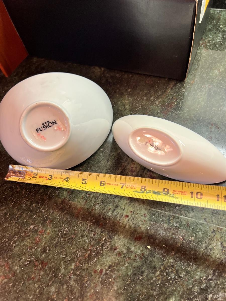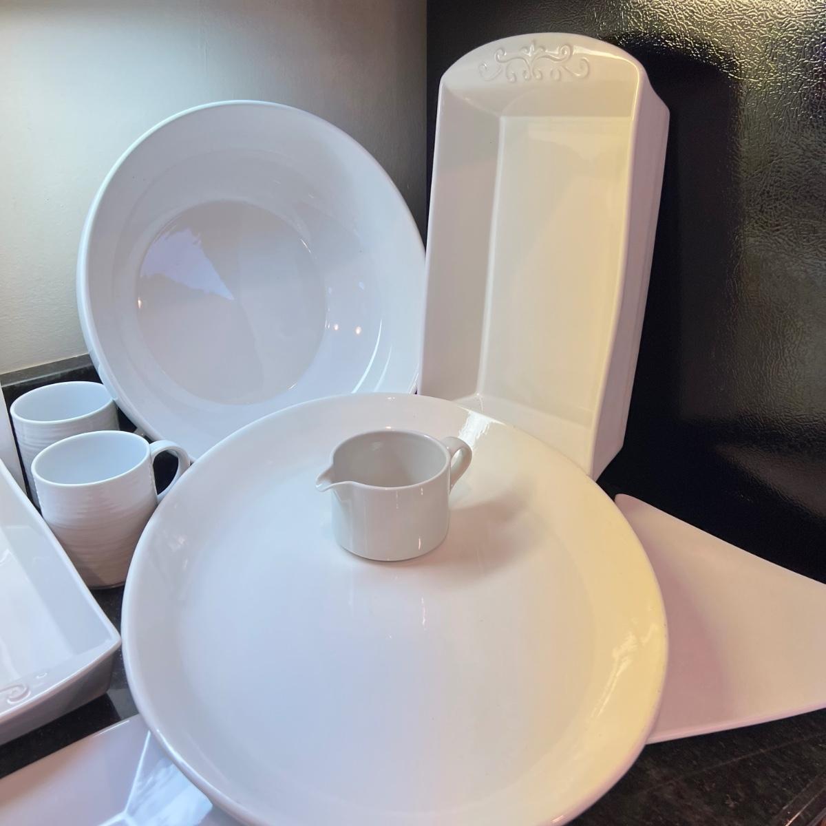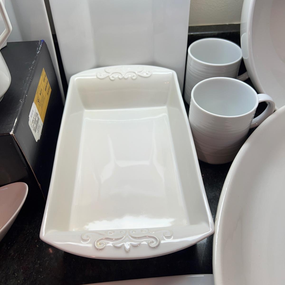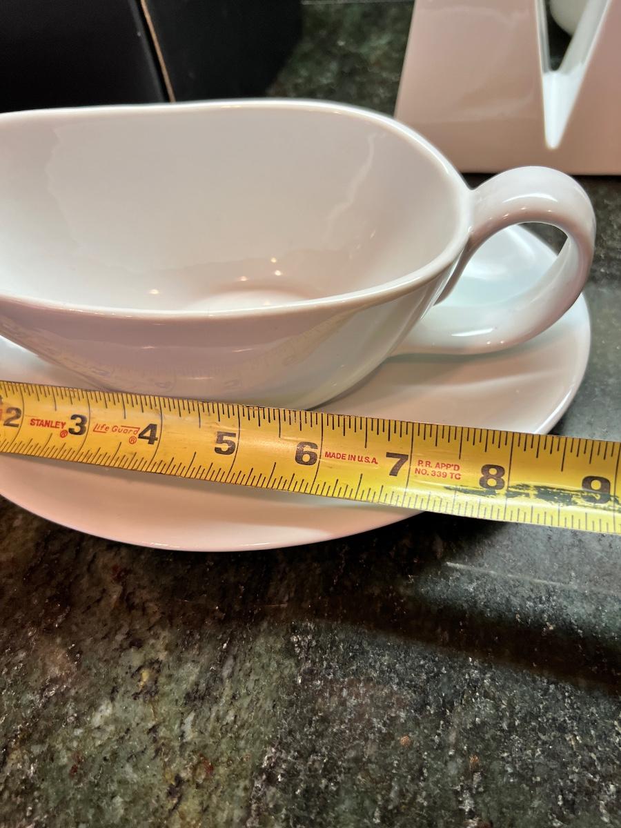 Great mixed lot of dinnerware and cookware, some designer. Sant' Andrea Royal Porcelain, Dansk Bistro, Fusion, Portuguese Mixcer, Syracuse Bone China, Vertex China, Dudson triangle plate.
