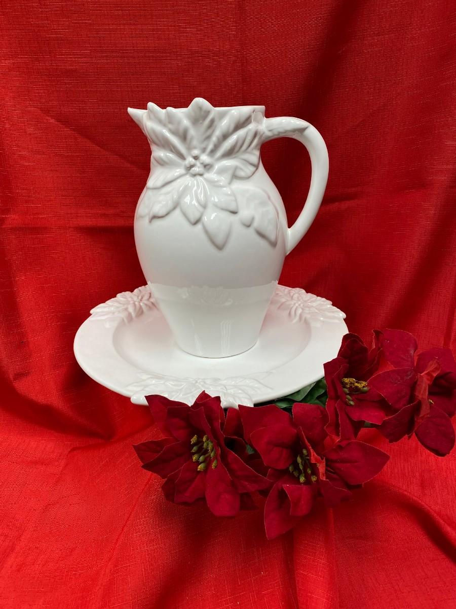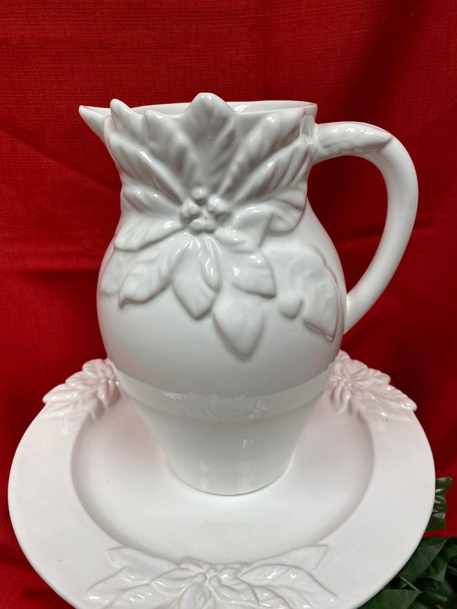 Pitcher is 11 inches tall, bowl is 13 inch diameter