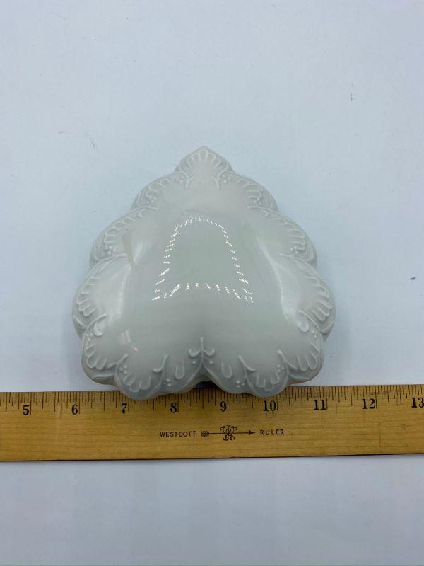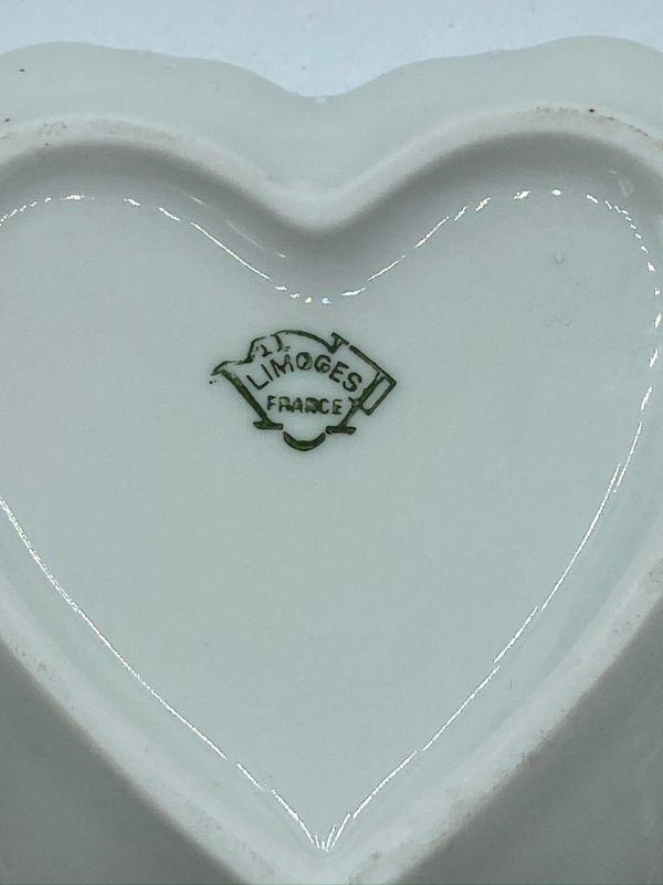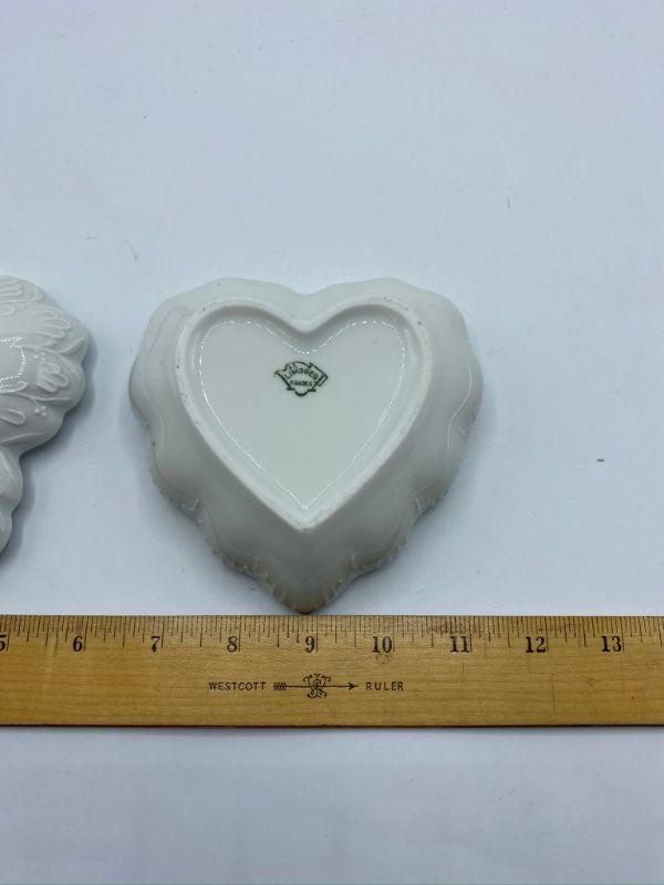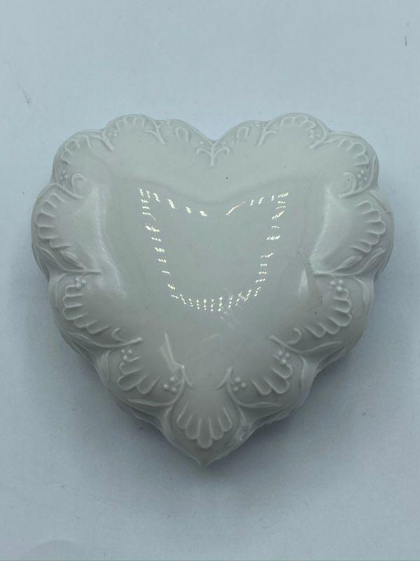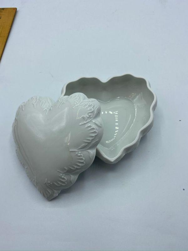 Simple but elegant white porcelain heart trinket box from Limoges France. About 5" widest spot. Great condition.