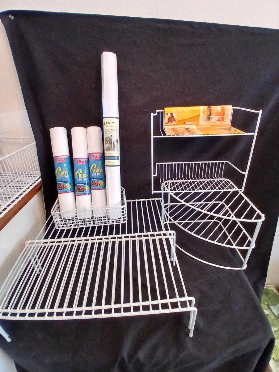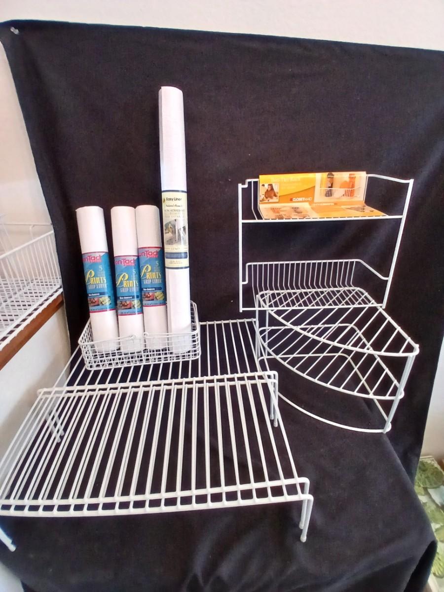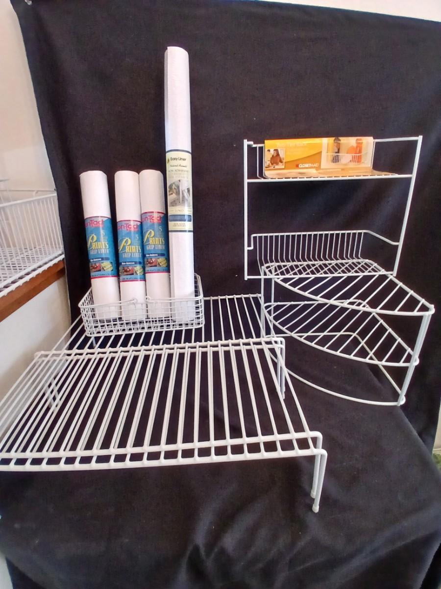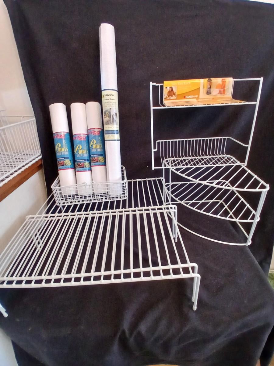 White portable cabinet shelves corner shelf and contact shelf liner