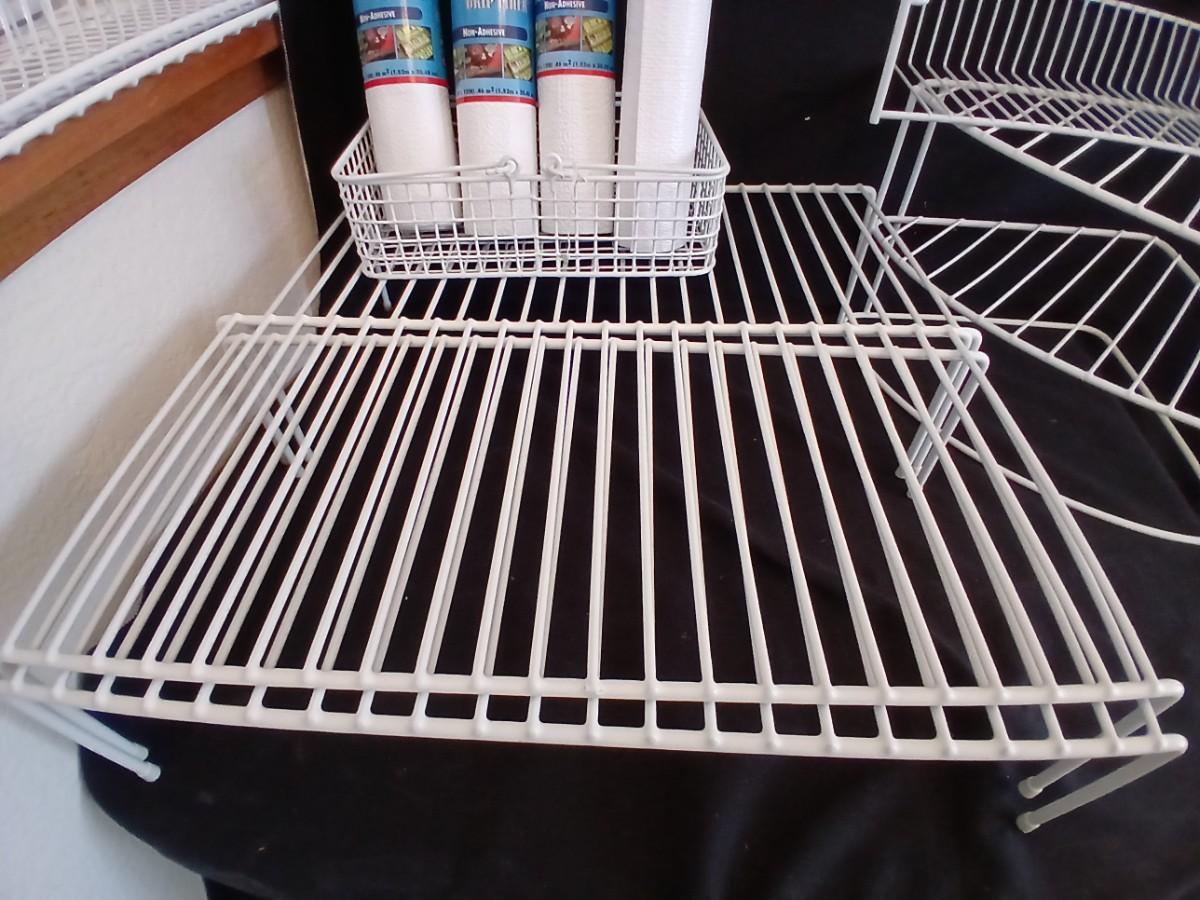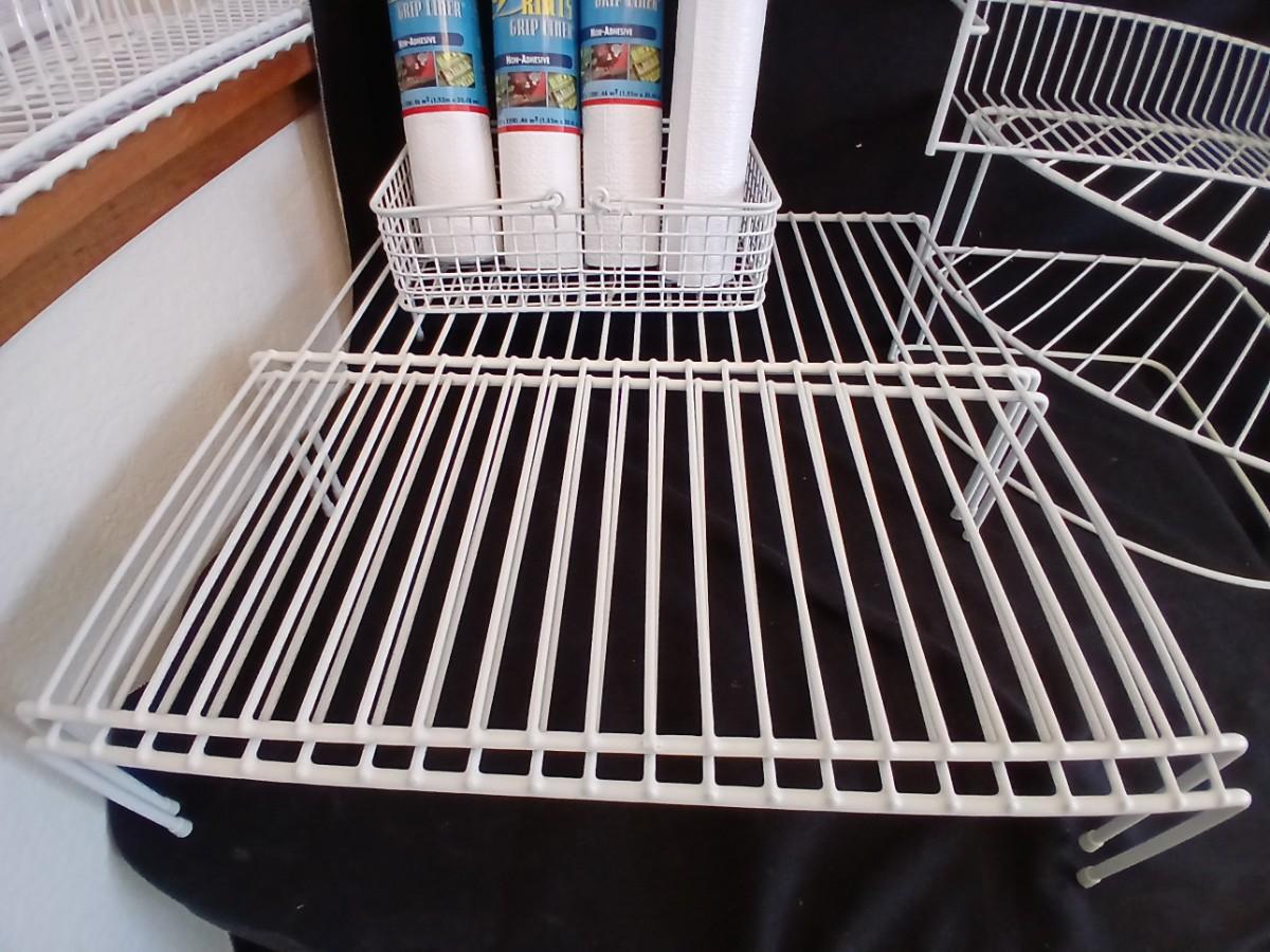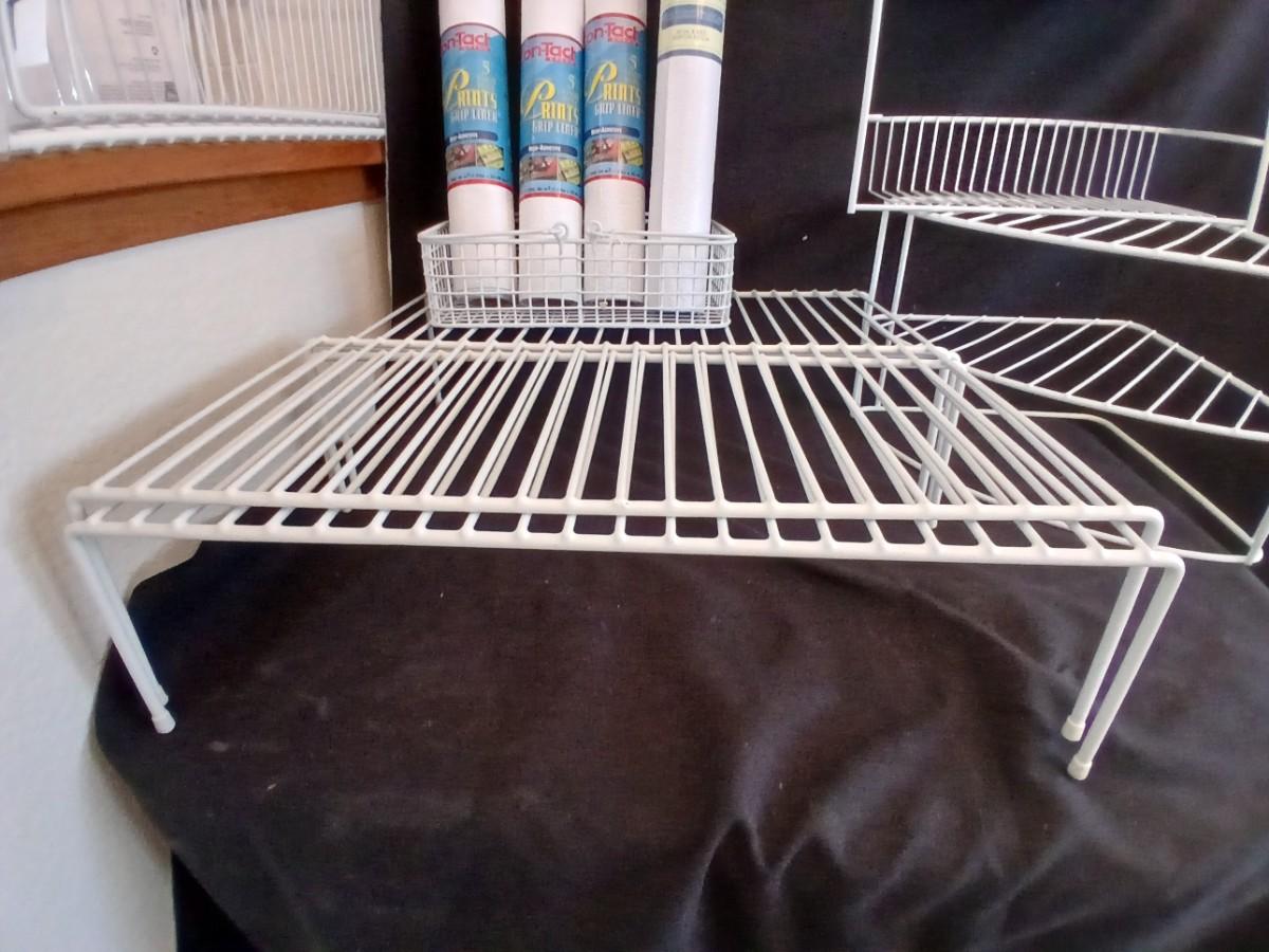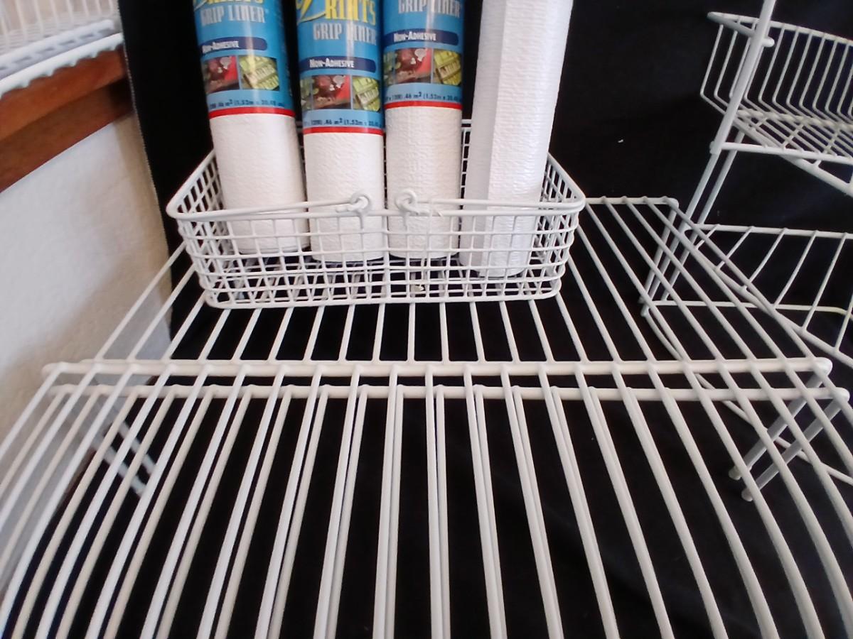 White portable cabinet shelves corner shelf and contact shelf liner