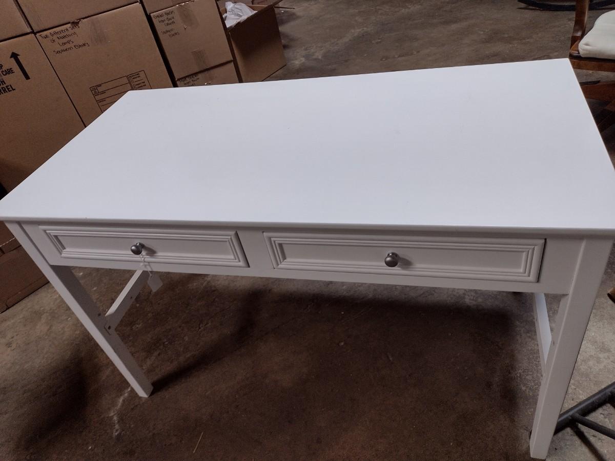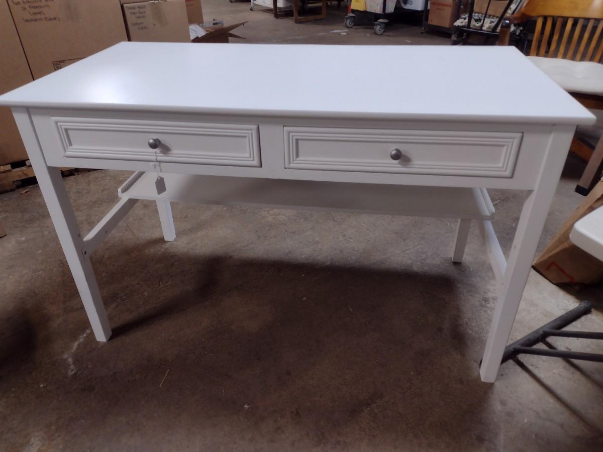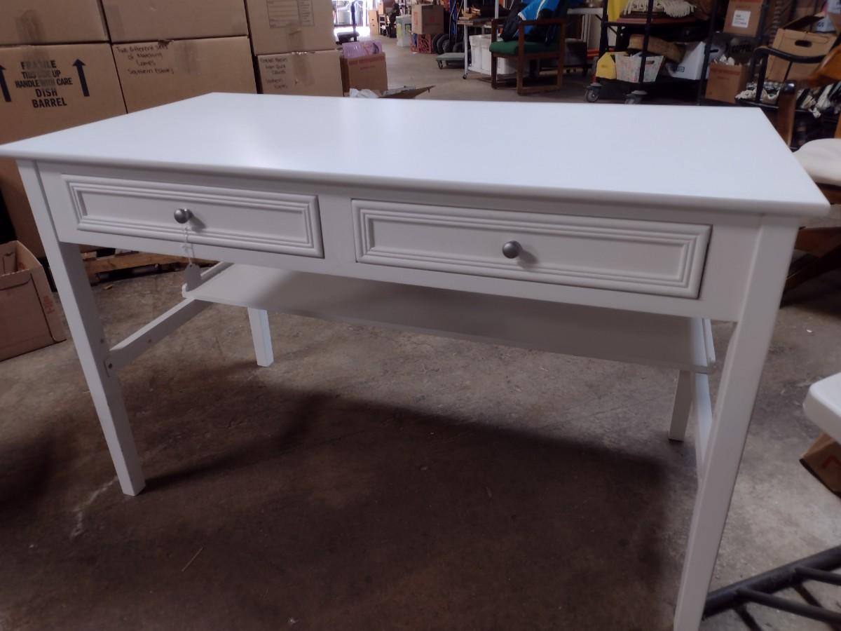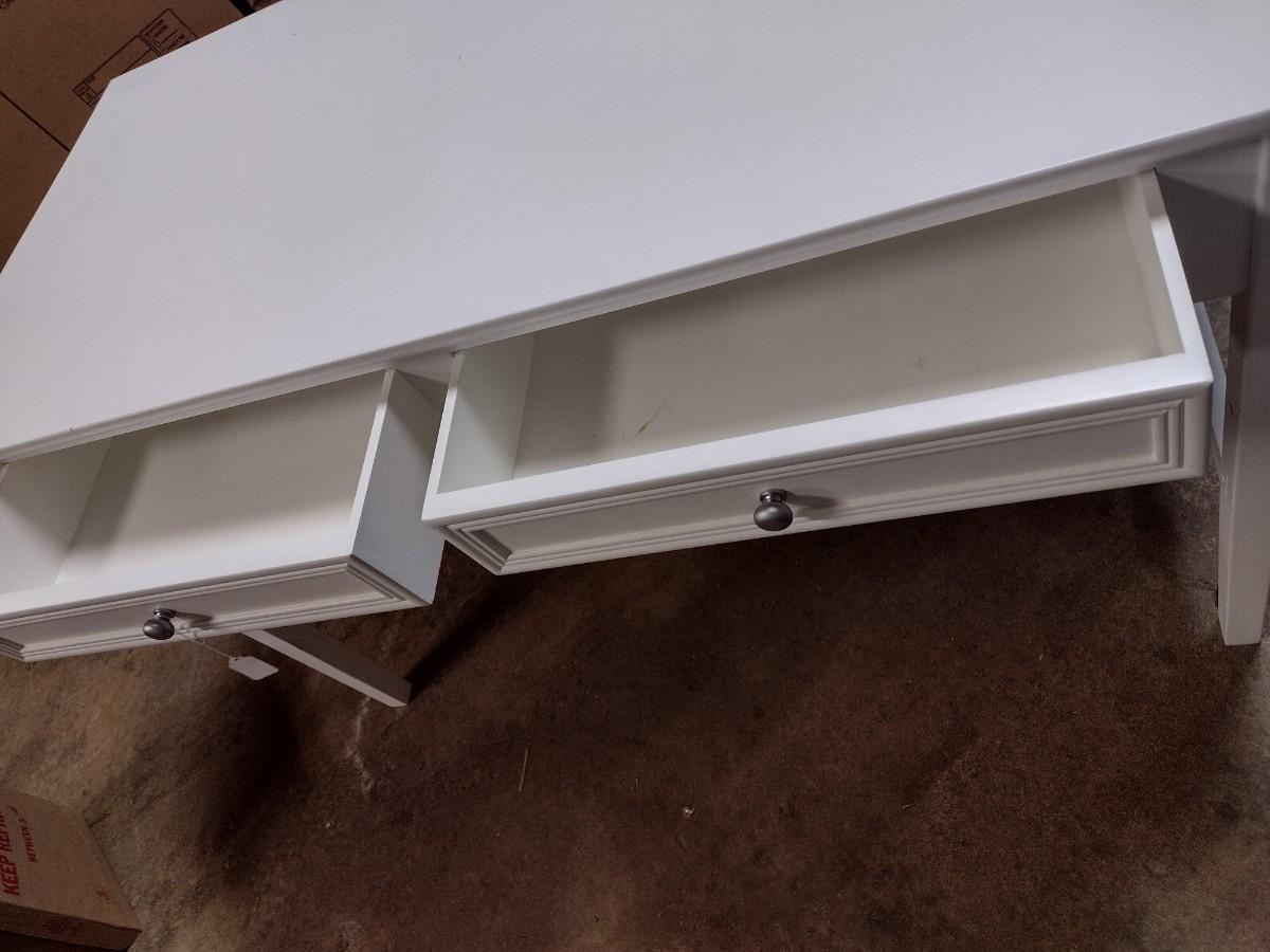 White Pressed Wood Double Drawer Worktable
