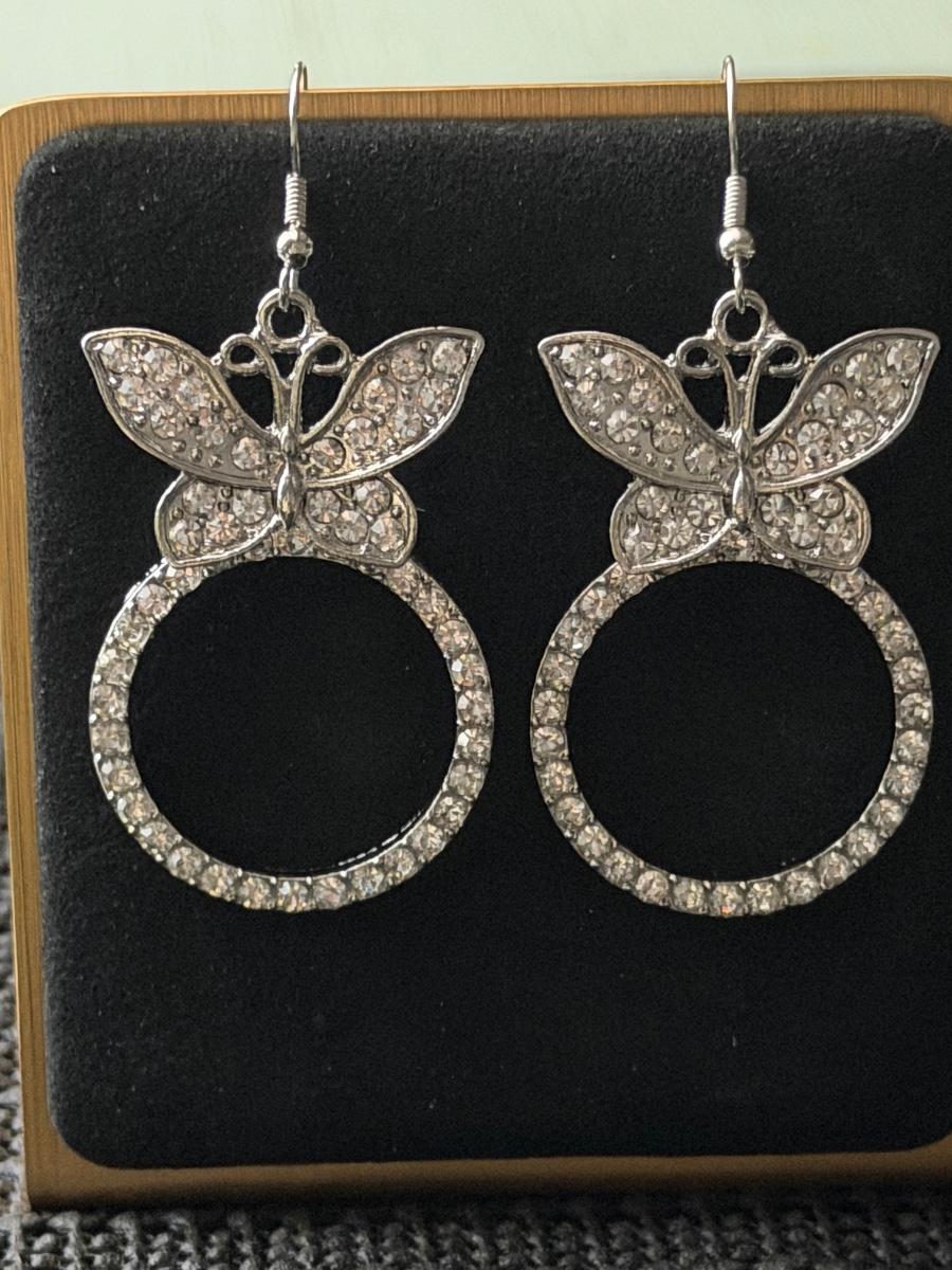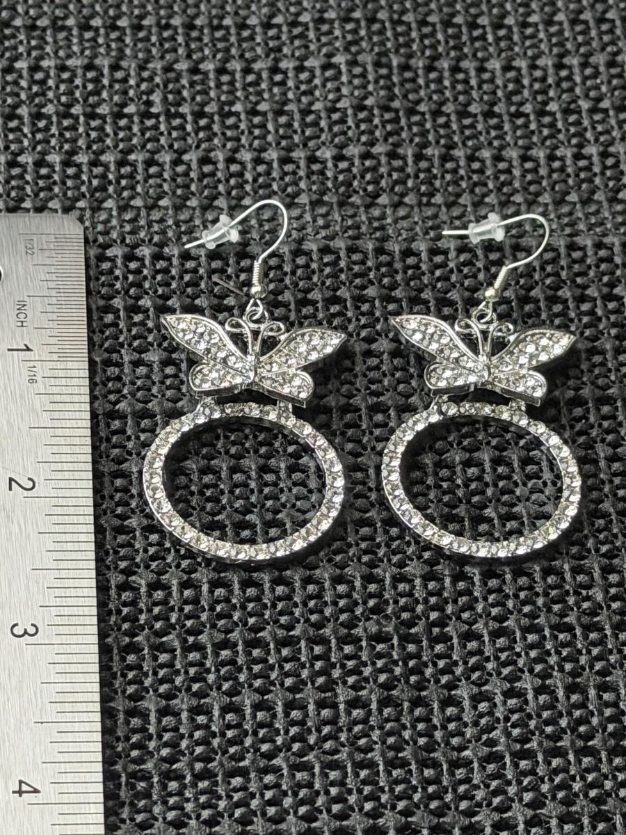 white rhinestone butterfly earrings.