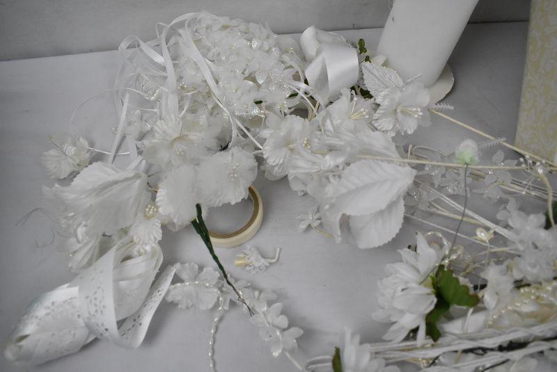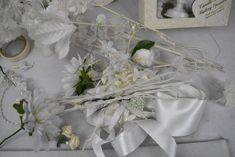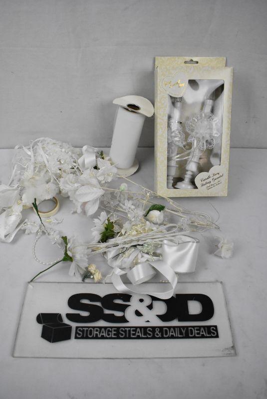 White Ribbon & Floral Items in Green Bin (3 gallons)