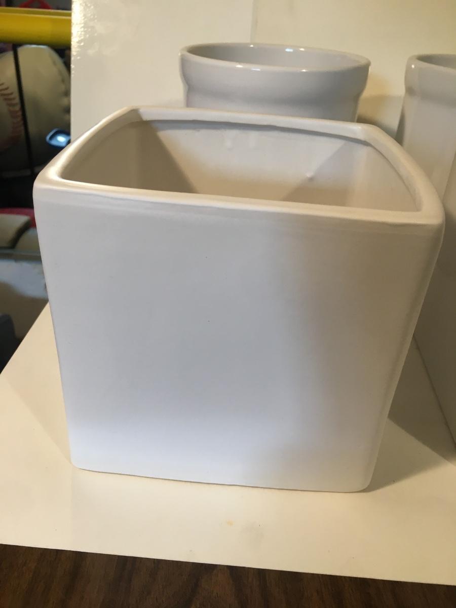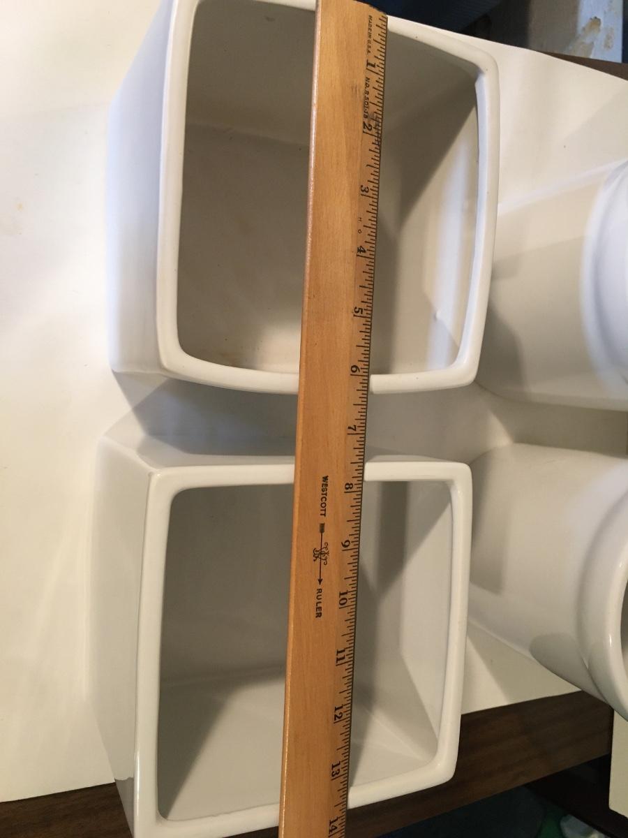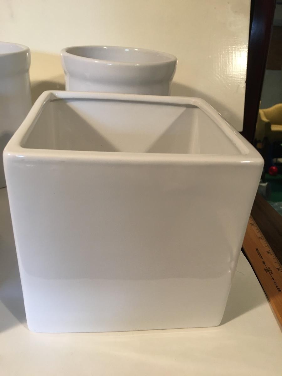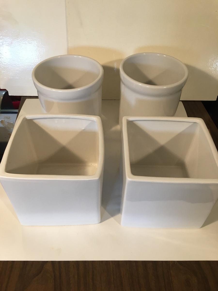 2 tall round Crate and Barrel cannisters and 2 square lower ones not C and B.