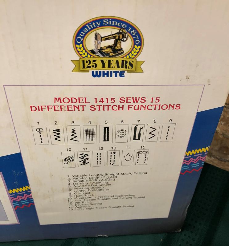 New in its box here is a quality White Sewing Machine...Model 1415...Heavy Duty...15 stitch functions...