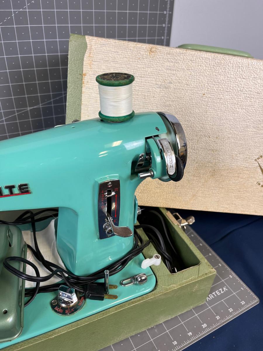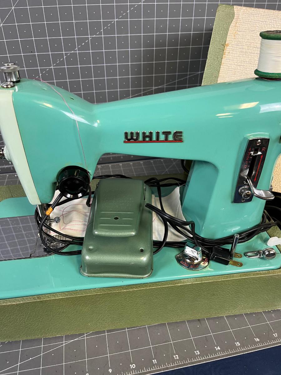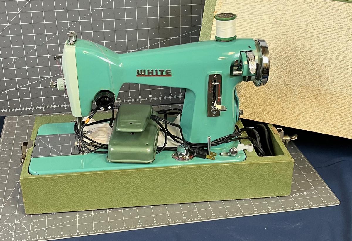 WHITE Sewing Machine Turquoise Color MCM In Case!