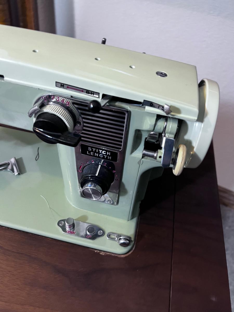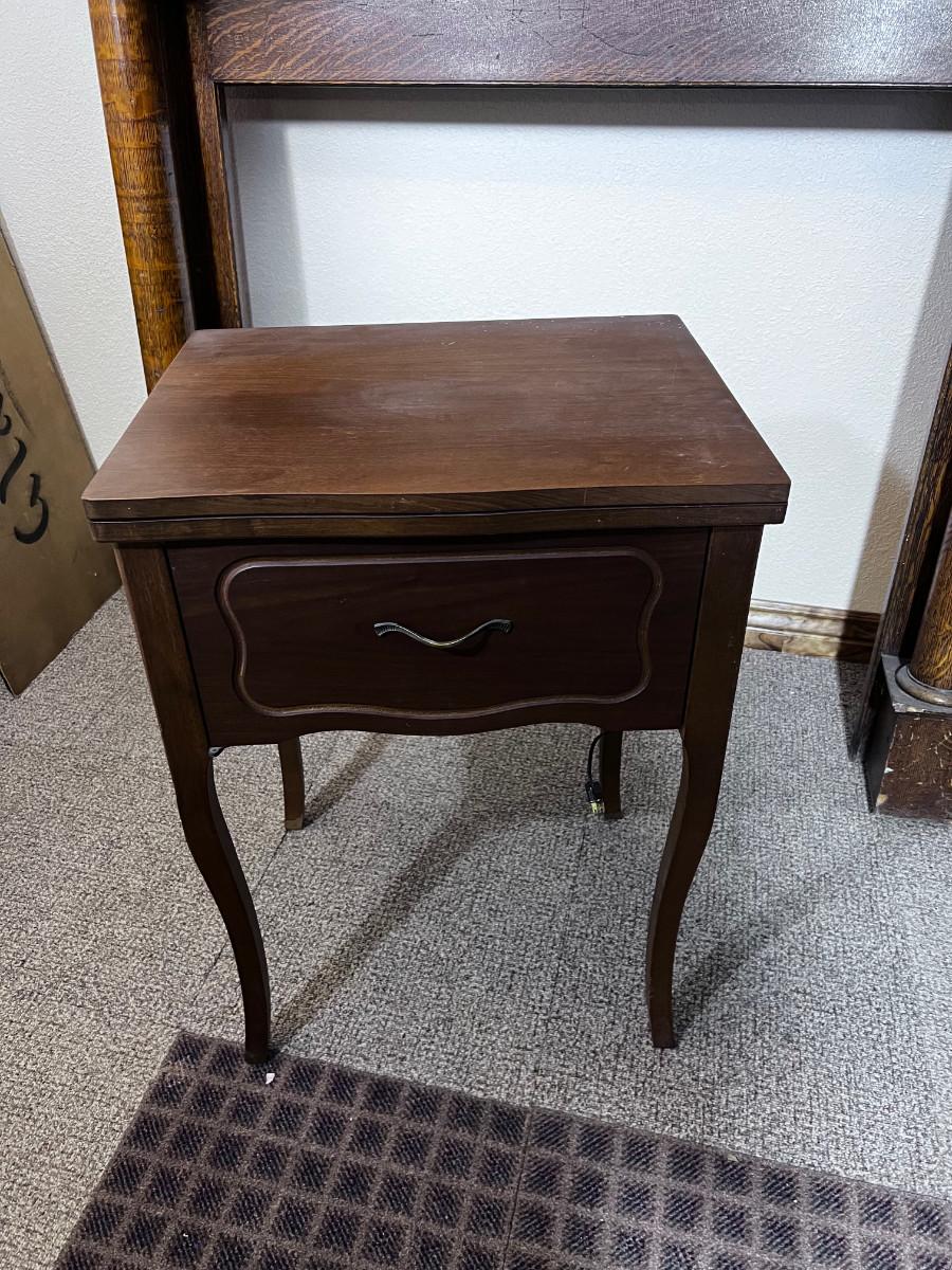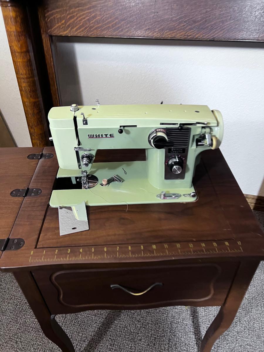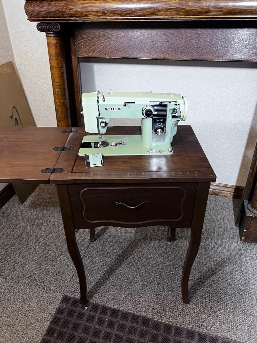 White Sewing Machine with Cabinet