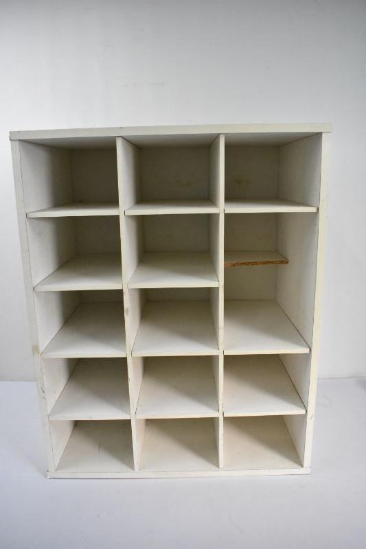 White Shoe Shelf, 15 Openings, 1 Shelf is Broken, 19" x 24" x 12"