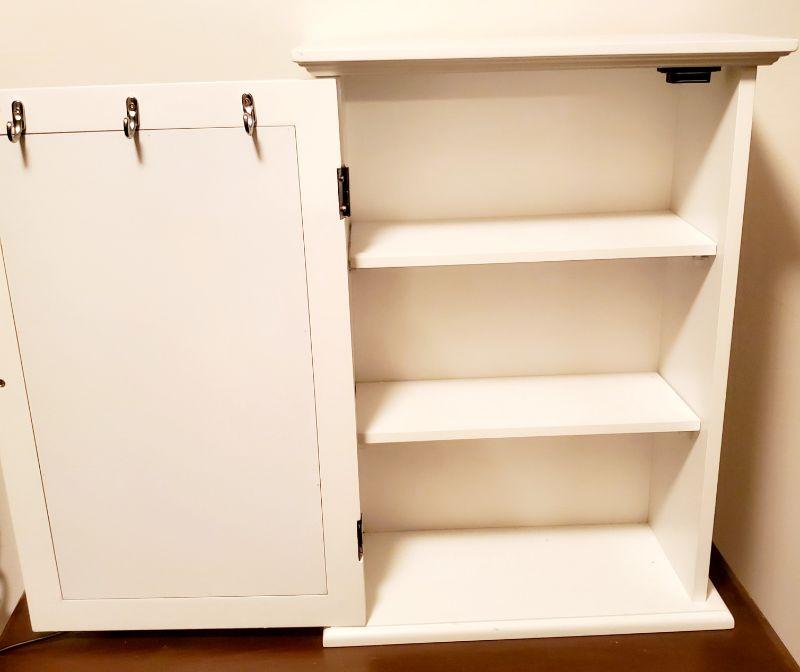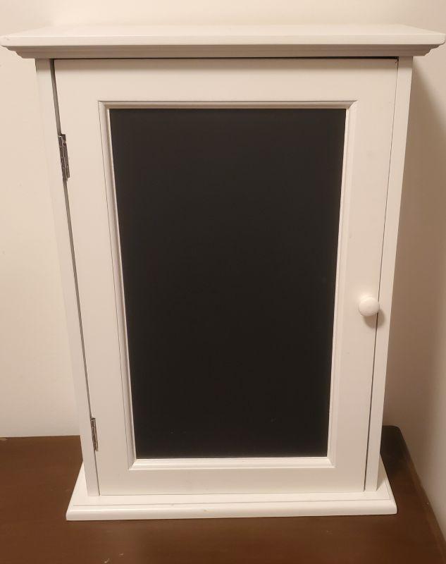 WHITE SMALL CABINET WITH CHALK BOARD FRONT